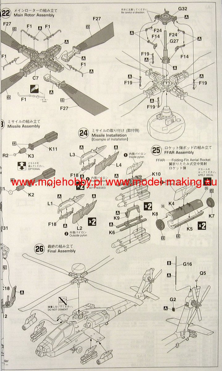 The McDonnell-Douglas (Boeing) AH-64 helicopter was selected as the winner in the competition with Bell's YAH-63 in December 1976. The name Apache stuck to the helicopter in 1981. This highly efficient machine has four-blade rotors driven by two General Electric T700-701 turbine engines with a capacity of 1696HP. The vestigial wings are fitted with conventional trailing edge flaps, and a plate tail improves longitudinal steering. The two-man crew takes seats one after the other in the armored cabin. The pilot's seat is in the rear, and the weapon operator / gunner is in the front. The key to the universal use of the helicopter are the TADS systems on the gunner's stand and the PNVS systems used by the pilot. The TADS is a target-tracking laser marker and rangefinder set and a forward-facing infrared sensor that is duplicated by the normal optics. The PNVS system is a developed FLIR system that allows you to pilot a helicopter just above the ground in order to prevent or delay detection by the enemy's anti-aircraft defense. Apache helicopters took part in the operation in Panama in 1989, during the Desert Storm in 1991, or the last conflict in Iraq (2003). At the end of 1990, the construction of a new version of the helicopter began, equipped with a Martin / Westinghouse Longbow millimeter radar installed above the head to control the weapons. It is used to control the Rockwell AGM-114 Hellfire anti-tank missiles. Technical data: Top speed: 300 km / h; climb speed 12.7 m / s, maximum range (without external tanks): 689 km, armament: 30mm Hughes M230A1 Chain Gun fixed-1 cannon, and outboard armaments - most often Hellfire missiles.