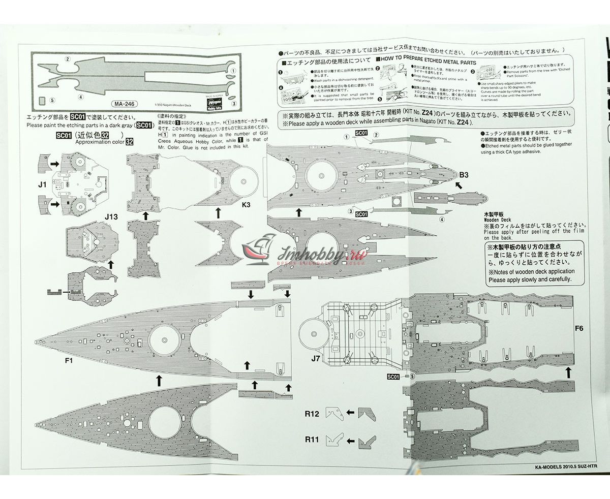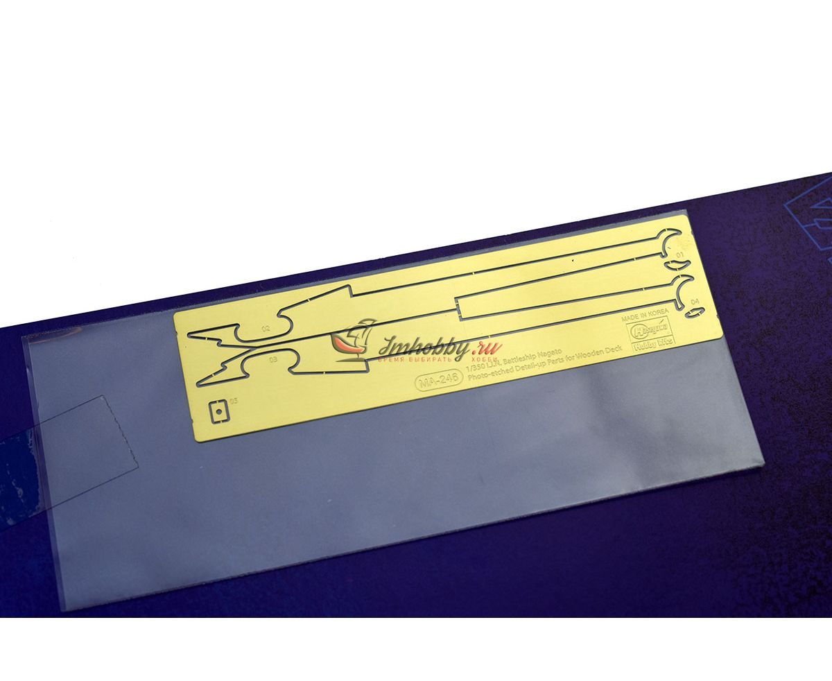 Деревянная палуба для IJN Battleship Nagato 1941 (HS40024) в 350 масштабе от Hasegawa. Набор Wooden Deck Z24 Battleship Nagato 1941 включает деревянную палубу и детали из фототравления в носовую часть палубы. В комплекте одна пластина.Код производителя - QG42. Может использоваться совместно с набором:Фототравление и детали для IJN Battleship Nagato 1941 (HS40024) масштаб 1:350 Hasegawa HS40065Фототравление для IJN Battleship Nagato Set A масштаб 1:350 Hasegawa HS72115Фототравление для IJN Battleship Nagato Set B масштаб 1:350 Hasegawa HS72116 Подходит для моделейIJN Battleship Nagato Battle of the Philippine Sea масштаб 1:350 Hasegawa HS40105IJN Battleship Nagato 1941 масштаб 1:350 Hasegawa HS40024