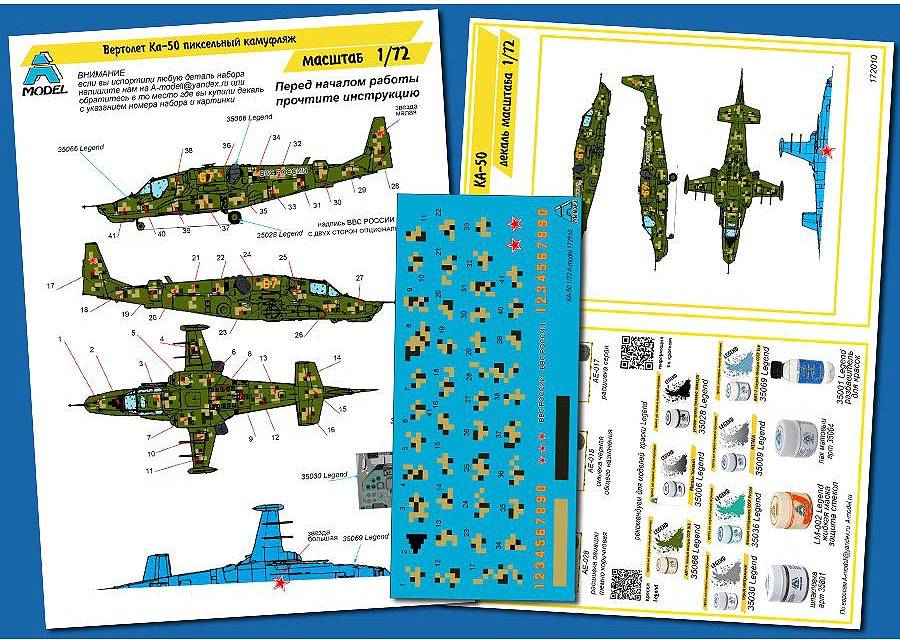 Набор декалей для Ка-50 для коллекционных и сборных моделей в масштабе 1:72 из пластика, железа и других материалов. Набор предаст вашей модели неповторимую оригинальность. При правильном расположении деталей набора подходит на любую современную модель. Способ применения: Нужный компонент декали вырезать как можно ближе по контуру, на несколько секунд опустить в теплую воду. Поднести к предполагаемому месту нанесения слегка прижав верхний прозрачный слой с рисунком сдвинуть нижний слой подложки, откорректировать декаль на поверхности слегка прижать по углам и неровностям на поверхности модели если такие есть и аккуратно прижать к месту установки бумажной салфеткой. После установки для уменьшения заметности нанесения модель можно покрыть прозрачным акриловым водосодержащим лаком заклеив перед этим все места куда не желательно попадания лака.