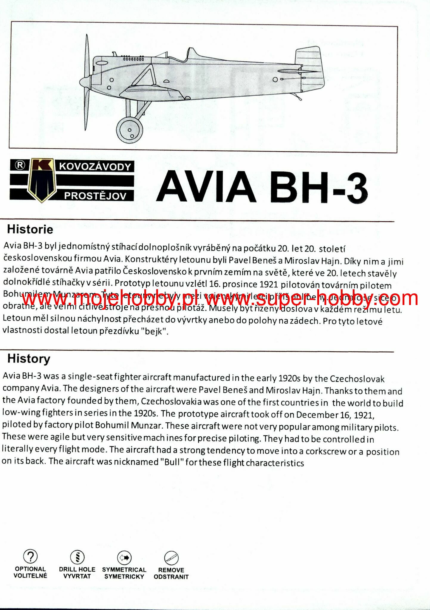 Designers Pavel Benes and Miroslav Hajn made their debut with the BH-1 Experimental monoplane. In 1920. it was awarded at the aviation exhibition in Prague. The further development of this design led to the creation of the BH-1bis aircraft, and later the Avia BH-3 fighter. The first flight of the prototype took place in 1921. It showed good flight properties and after introducing a few corrections on June 16, 1921. was presented to representatives of military aviation. The wing structure was damaged during the flight. The flying pilot Munzar was killed. The army, however, did not give up on the purchase of the plane, especially since the presentation of the second prototype went smoothly. Of the 10 serial Avii ordered, the first went to the squadrons in August 1923. This type of aircraft had a disastrous reputation for flight instability and a tendency to spin. As a result, they quickly disappeared from linear units. For some time they were used for training at the flight school in Cheb. The Avia BH-4 was a further development of this design. Construction: completely wooden, single-engine, single-seat, low-wing low wing. Classic, two-wheeled, fixed undercarriage. The drive was a BMW III in-line engine with 136 kW (185 hp). Armament: 2 synchronized 7.7mm Vickers MGs located above the engine. Other technical data: Maximum speed: 240 km / h, speed of climb: 7.9 m / s, maximum ceiling 7800 m, maximum range: 500 km.