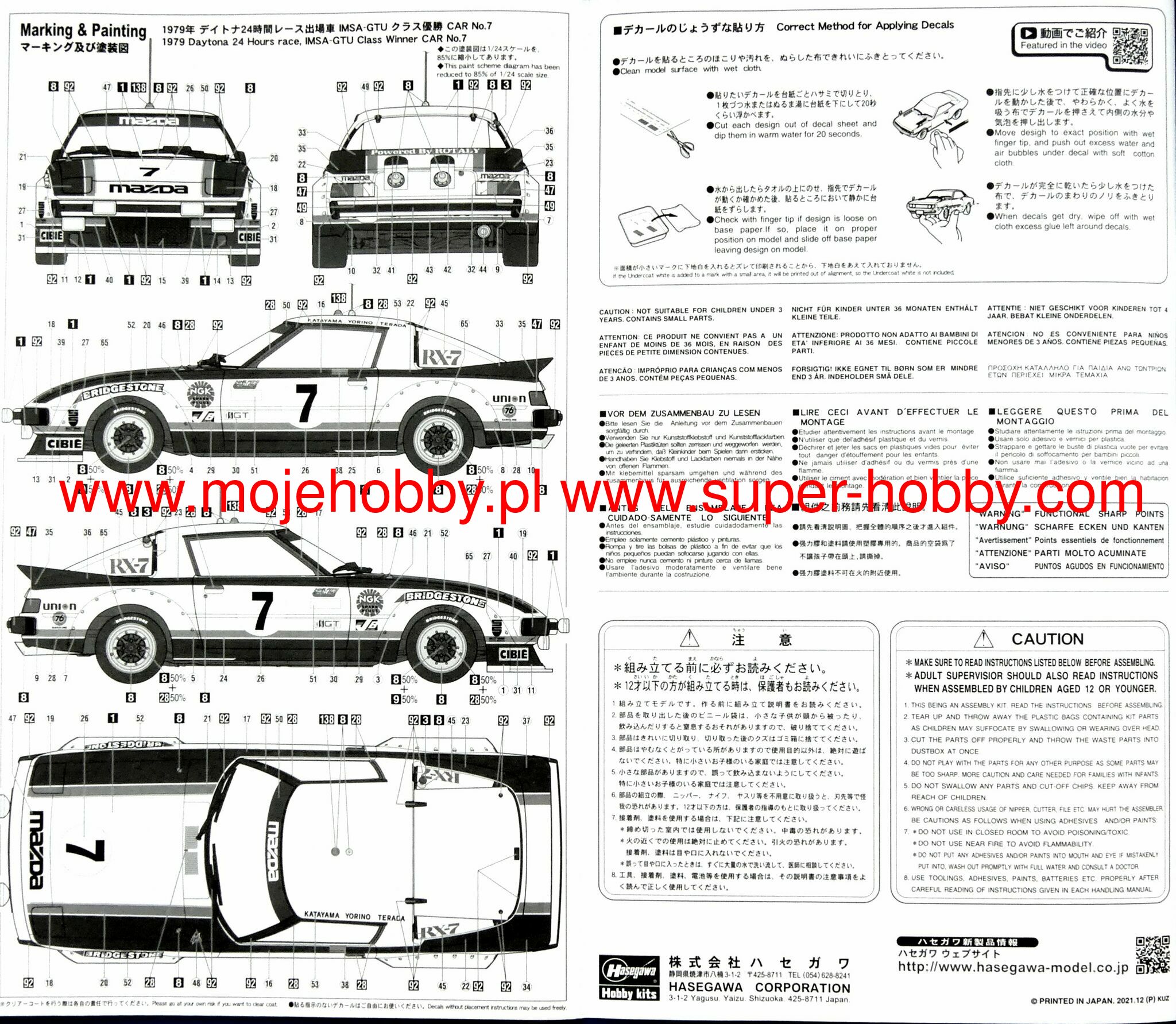 21146 MAZDA SAVANNA RX-7 (SA22C) "1979 DAYTONA GTU CLASS WINNER" hasegawa 1/24