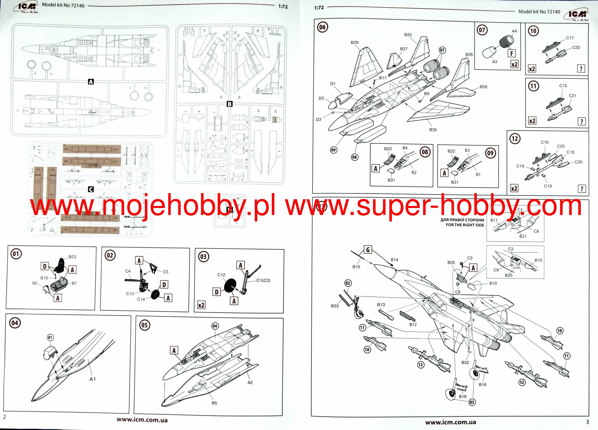 Mikojan-Guriewicz MiG-29 (NATO: Fulcrum) is a Soviet, twin-engine, 4th generation heavy front-line fighter with trapezoidal, strip wings. The mere number of over 1000 MiG 29s produced between 1977 and 1992 proves the potential capabilities of this aircraft. In fact, it must be included in the group of 3 or 4 most important, currently in active service, 4th generation fighters in the world. The MiG-29 was designed in the 1970s as a construction that could match or even exceed the combat capabilities of fighters from the then hostile western camp. And it must be admitted that it is in no way inferior to, for example, the F-16, and with many elements, such as a powerful, twin-engine drive, it surpasses the American competitor. As the MiG-29 was designed to be serviced as quickly as possible, even in the field and by mechanics with minimal experience, any repairs can actually be carried out at lightning speed. It's hard to imagine, but 5 mechanics are able to replace and test an engine in less than an hour! The extraordinary abilities of the Fulcrum do not end there. In case of problems with the drive, even when fully loaded, it can start using one engine, and then fire the other in the air. The permanent armament of the MIG 29 is the 30mm GSh-301 cannon, known for its precision. The external nodes can carry AA-10, AA-11 or AA-8 air-to-air missiles, and UB-32-57 or the unguided but larger S-8K missiles to counter ground targets. not only of the former Eastern Bloc countries, but also many other users who appreciated its great potential. Several versions of this successful fighter were created. The most important of them are, among others the first mass-produced, i.e. the MiG-29 (Fulcrum-A) with the S-29 Topaz radar and the OEPrNk-29 optoelectronic system. Another development version is the MiG-29M (Fulcrum-E) with the S-29M Żuk radar with a greater range and a better guidance and aiming system. More powerful RD-33K engines were also used instead of the RD-33. A fly-by-wire system was also used. Technical data: length: 17.37 m, wingspan: 11.4 m, height: 4.73 m, maximum speed: 2400 km / h, speed of climb: 330 m / s, maximum range: 2100 km, maximum ceiling 18000 m, armament: fixed-1 30mm GSh-301 cannon, suspended (M version) - up to 5000 kg of cargo.