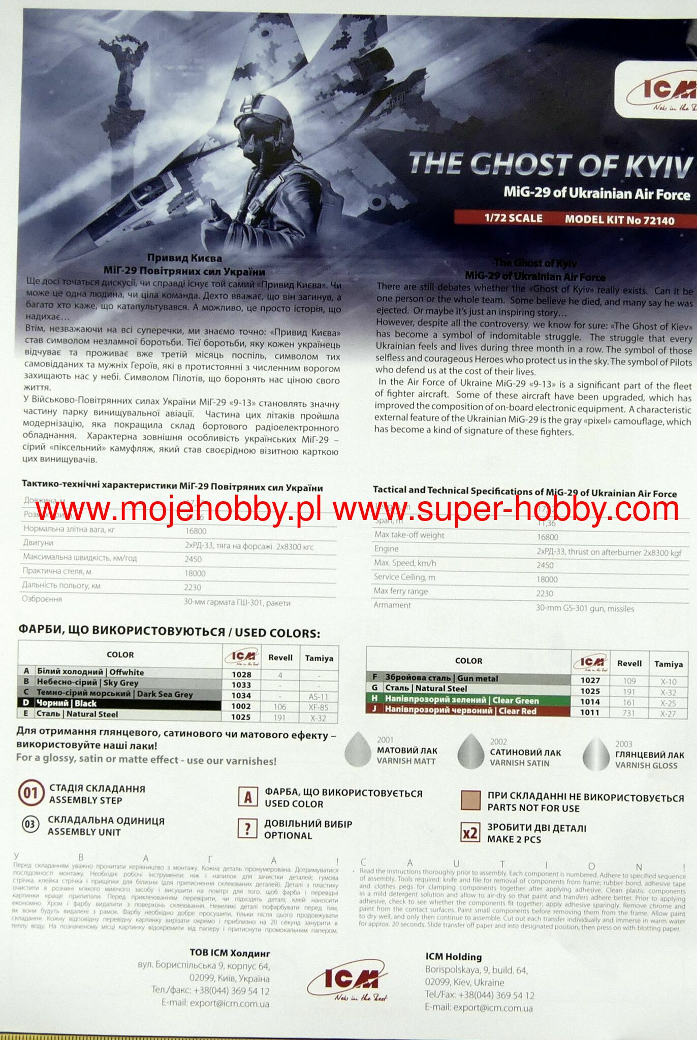MIG-29 OF UKRAINIAN AIR FORCE - THE GHOST OF KYIV icm 1/72
