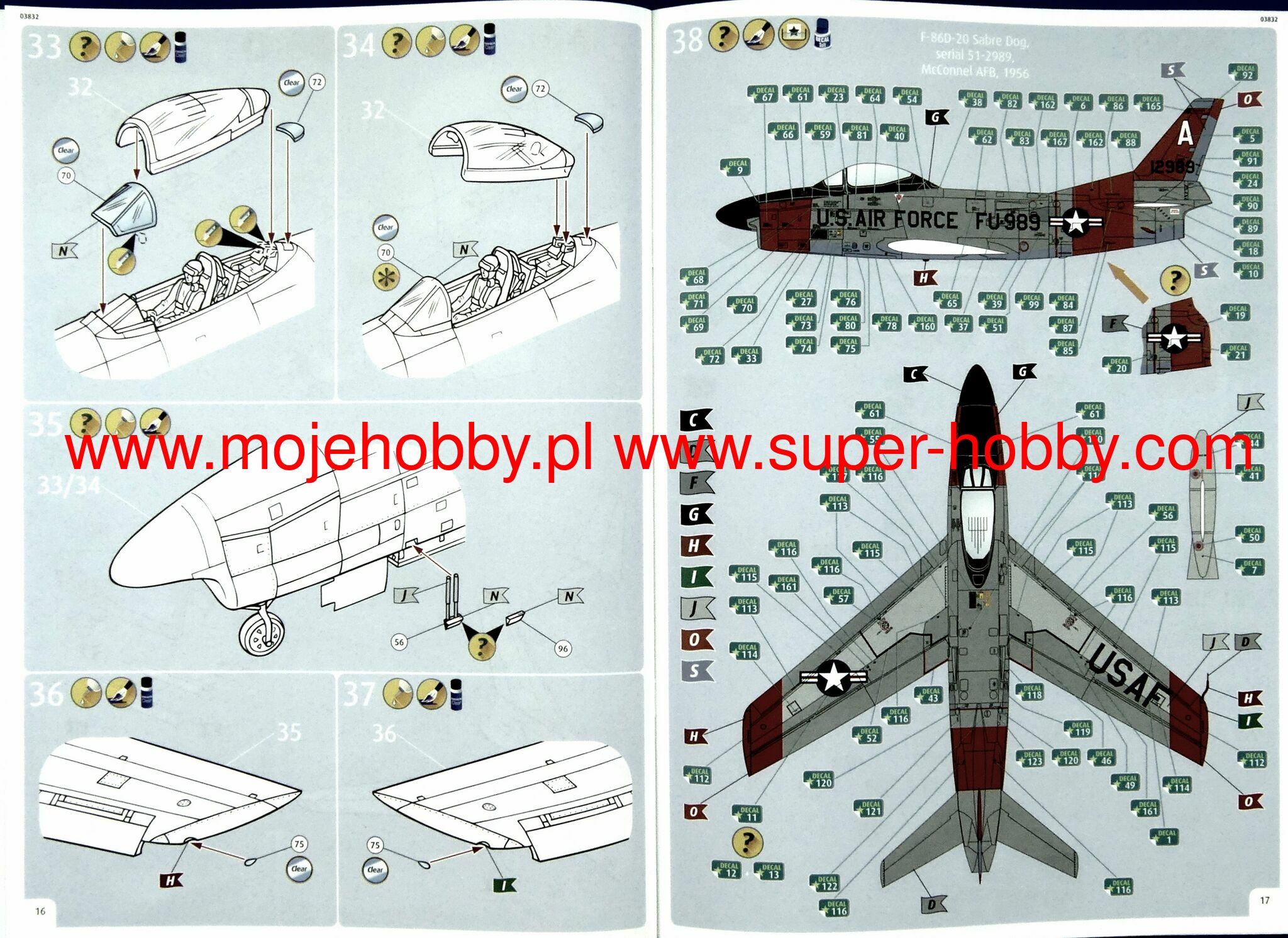 The North American F-86 Saber is an American single-seat turbojet fighter aircraft that was considered a worthy opponent of the Mig 15 during the Korean War. The flight of the F-86 prototype, which was powered by the Chevrolet J35-C-3 engine, took place in October 1947. The plane entered the line in 1949. The F-86 was the first mass-produced fighter capable of exceeding the speed of sound. The North American F-86 Saber was the U.S. primary fighter during the Korean War that was able to compete and successfully fight the Mig-15. It is estimated that the ratio of combat losses of both these machines is 2: 1 in favor of the American machine. The F-86 also took part in other conflicts: in the Indo-Pakistani war in 1965 and in the Bangladeshi War of Independence in 1971. A dozen or so versions of the F-86 were created, which differed from each other in the built-up engine, weapons and tasks performed. Three versions are the most popular. F-86A, the first serial version, fulfilling the role of a fighter, 554 copies were produced. Another is the F-86D, with a new General Electric J47-GE-17 engine, a characteristically elongated bow part and a new horizontal tail. In total, 2504 units of this version were created. Finally, the F-86F version, with the new General Electric J47-GE-27 engine and reinforced wings. 2239 units of this version were produced. The F-86 was also produced under the license of min. in Australia and Canada. In total, 9,812 pieces of this successful aircraft were built. Technical data (F-86F version): Maximum speed: 1,106 km / h, climb speed: 45.7 m / s, maximum altitude 15,100 m, maximum range: 2,454 km, armament: fixed - 6 M2 Browning 12 machine guns 7mm sling - up to 2400 kg of bombs and rockets.