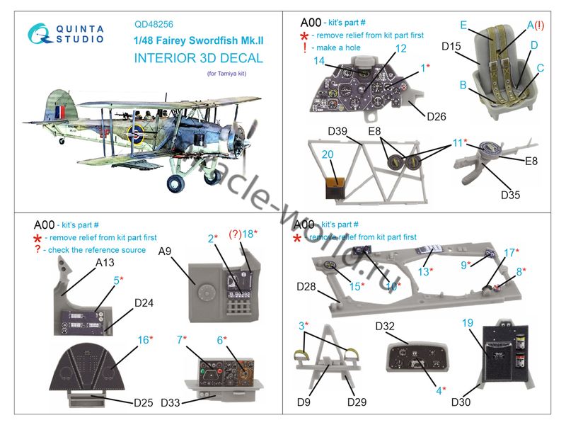 Купить QUINTA QD48256 3D ДЕКАЛЬ ИНТЕРЬЕРА КАБИНЫ SWORDFISH MK.II (ДЛЯ МОДЕЛИ TAMIYA) 1/48 (1/48)