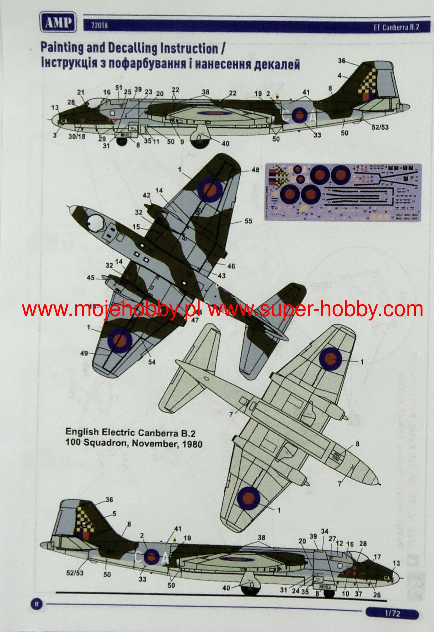 The English Electric Canberra was a British jet bomber and reconnaissance aircraft from the Cold War and modern times. The plane's flight took place in 1949, and the machine entered service in 1951. In total, about 900 aircraft of this type were built for the needs of the RAF. In the Canberra B.6 version, the drive was provided by two Rolls-Royce Avon RA7 engines with a thrust of 36 kN each. The on-board armament of the aircraft consisted of four 20mm Hispano Mark V cannons. The machine could also carry a load of bombs and rockets with a total weight of up to approx. 3,600 kilograms. Development work on the English Electric Canberra began at the end of World War II, and their goal was to create a bomber with the best possible flight parameters - including maximum speed and range - for the RAF. It was quickly recognized that the machine must be powered by jet engines. What's more, despite the good pace of work, the design of the aircraft was carefully developed and turned out to be a hit. Finally, when it was introduced to the English Electric line, the Canberra was probably the best aircraft in its class in the world, and its great performance meant that it retained its combat value throughout almost the entire Cold War! In the course of production, many versions of this successful machine were created, including the Canberra B.2 (the first serial production version), the Canberra PR.3 (the photo reconnaissance version) and the Canberra T.4 (the first training version). It is worth adding that the plane was operated not only by Great Britain, but also by Australia, Argentina and India. The English Electric Canberra, with numerous modifications and licensed production, also served in the USAF as the Martin B-57 Canberra.