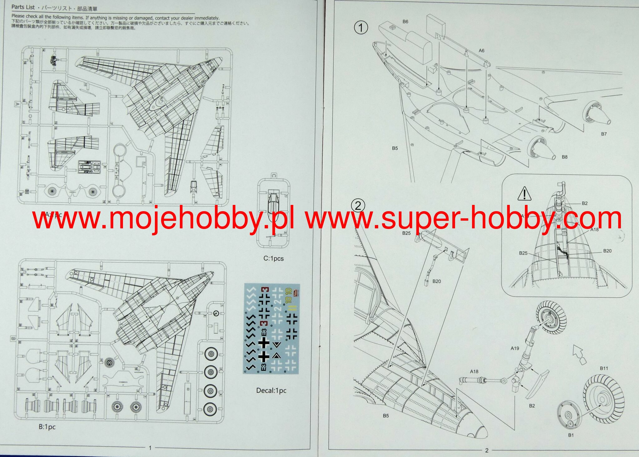 Дополнительная информация Немецкий турбореактивный истребитель, бомбардировщик и самолёт-разведчик времён Второй мировой войны. В набор входят пластиковые литники, прозрачные детали, декаль и инструкция.