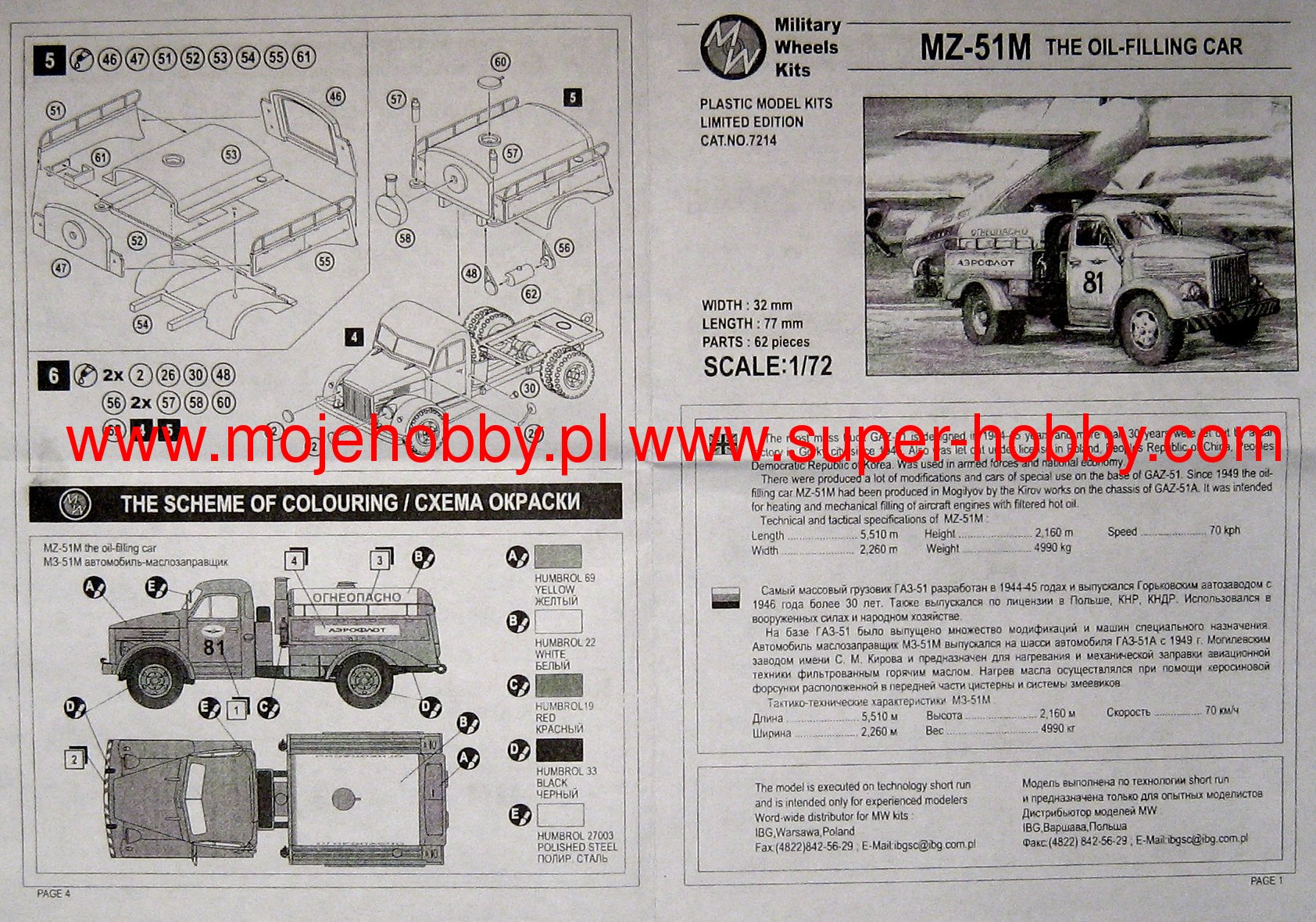 The GAZ-51 was a Soviet multi-role civilian and military truck from the Second World War and the post-war period. The first copies of this car were presented in 1940, but mass production started only in 1946 and lasted until 1975. Approximately 3.4 million trucks of this type were created in its course. The car was manufactured by plants in the cities of Irkutsk and Gorky. A single GAZ-51 engine with a capacity of 70 hp served as the drive. The GAZ-51 was developed to replace the GAZ-AA and GAZ-MM cars. The first design works started as early as 1937, but in 1941 they were interrupted as a result of the German invasion of the USSR. They were resumed only in 1943, changing also a few design assumptions of the new car - especially the load capacity requirements. Finally, after a series of tests and the introduction of further changes, serial production started in 1946. Many specialized versions were created in its course, including: GAZ-51I (version with a crew cab), GAZ-51N (military version), GAZ-51S (version intended for agriculture) and GAZ-51W (export version with increased capacity). The GAZ-51 car was also licensed - for example in Poland under the designation FSC Lublin-51.