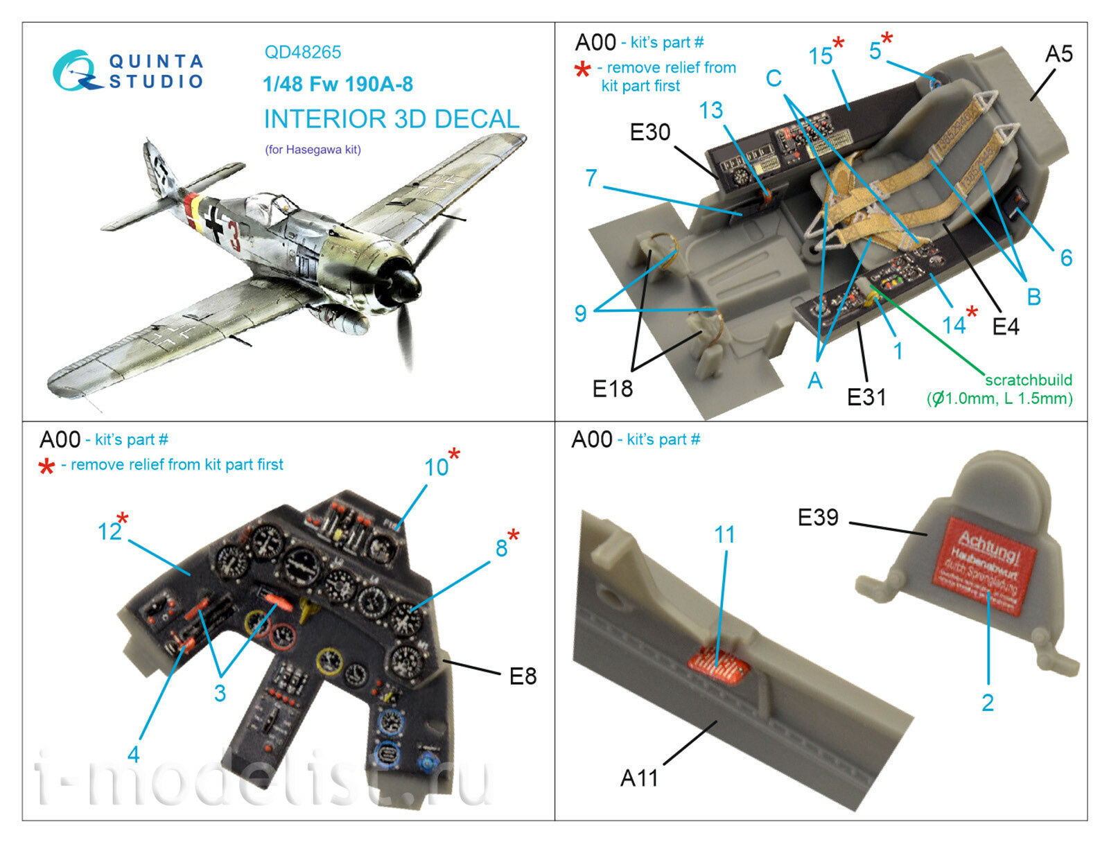 Купить QD48265 QUINTA STUDIO 1/48 3D ДЕКАЛЬ ИНТЕРЬЕРА КАБИНЫ FW 190A-8 (HASEGAWA) (1/48)