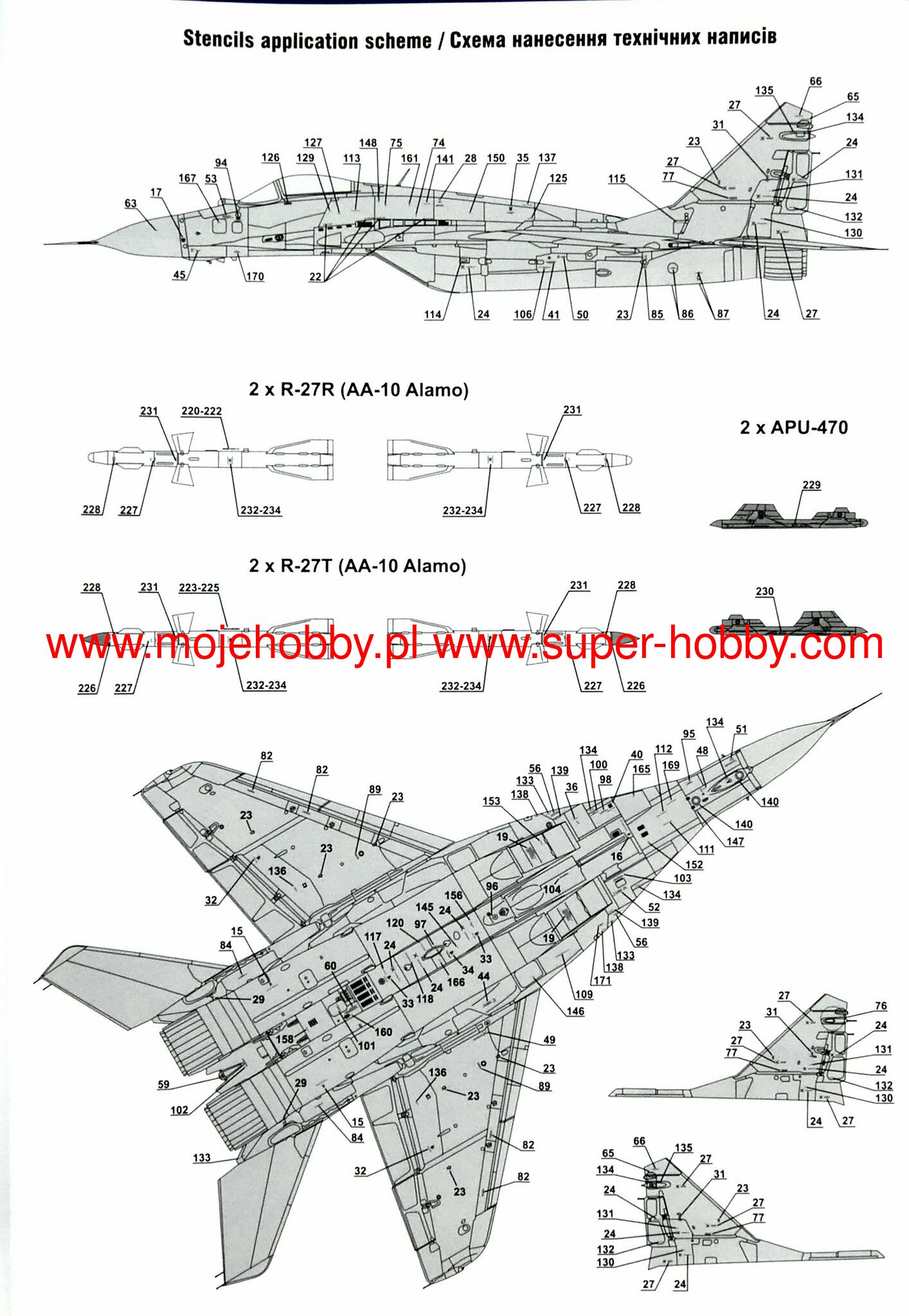 Mikojan-Guriewicz MiG-29 (NATO: Fulcrum) is a Soviet, twin-engine, 4th generation heavy front-line fighter with trapezoidal, strip wings. The mere number of over 1000 MiG 29s produced between 1977 and 1992 proves the potential capabilities of this aircraft. In fact, it must be included in the group of 3 or 4 most important, currently in active service, 4th generation fighters in the world. The MiG-29 was designed in the 1970s as a construction that could match or even exceed the combat capabilities of fighters from the then hostile western camp. And it must be admitted that it is in no way inferior to, for example, the F-16, and with many elements, such as a powerful, twin-engine drive, it surpasses the American competitor. As the MiG-29 was designed to be serviced as quickly as possible, even in the field and by mechanics with minimal experience, any repairs can actually be carried out at lightning speed. It's hard to imagine, but 5 mechanics are able to replace and test an engine in less than an hour! The extraordinary abilities of the Fulcrum do not end there. In case of problems with the drive, even when fully loaded, it can start using one engine, and then fire the other in the air. The permanent armament of the MIG 29 is the 30mm GSh-301 cannon, known for its precision. The external nodes can carry AA-10, AA-11 or AA-8 air-to-air missiles, and UB-32-57 or the unguided but larger S-8K missiles to counter ground targets. not only of the former Eastern Bloc countries, but also many other users who appreciated its great potential. Several versions of this successful fighter were created. The most important of them are, among others the first mass-produced, i.e. the MiG-29 (Fulcrum-A) with the S-29 Topaz radar and the OEPrNk-29 optoelectronic system. Another development version is the MiG-29M (Fulcrum-E) with the S-29M Żuk radar with a greater range and a better guidance and aiming system. More powerful RD-33K engines were also used instead of the RD-33. A fly-by-wire system was also used. Technical data: length: 17.37 m, wingspan: 11.4 m, height: 4.73 m, maximum speed: 2400 km / h, speed of climb: 330 m / s, maximum range: 2100 km, maximum ceiling 18000 m, armament: fixed-1 30mm GSh-301 cannon, suspended (M version) - up to 5000 kg of cargo.
