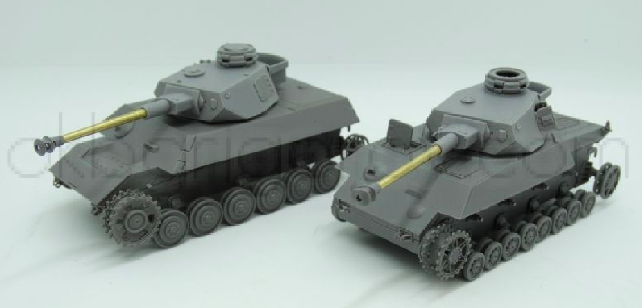 PzKpfw IV (Panzerkampfwagen IV) was a German medium tank from the Second World War. The first prototypes of the vehicle were created in 1936, and serial production continued in the period 1938-1945, ending with the production of about 8,600 vehicles. The D version of the tank was powered by a single Maybach HL 120 TRM engine with a capacity of 300 HP. It was armed with 1 75mm KwK 37 L / 24 gun and 2 7.92mm MG 34 machine guns. The PzKpfw IV was created as a result of a competition announced at the end of 1934 by the German Armaments Department for a medium tank weighing up to 18 tons and armed with a 75 mm gun. The competition was won by the Krupp company, whose vehicle was put into mass production - as it turned out, it was a vehicle that can be safely called the "workhorse" of German armored forces during World War II and one of the most intensively developed and modernized Wehrmacht tanks. Numerous variants of the PzKpfw IV were created in the course of production. Chronologically, the first was the A version, armed with a 75mm short-barreled gun and a 230hp engine. However, versions B and C appeared quickly, in which several significant changes were made: first of all, more powerful engines (265 HP in version B and Maybach HL 120 TRM with 300 HP in C version - which were installed in PzKpfw IV until 1945 year), and the armor of the entire car was improved. The F1 and F2 versions turned out to be a real revolution, in which the frontal armor was increased to 60 mm, and the main armament was changed to the great, long-barreled 75mm KwK 40 L / 43 cannon, which in 1942 and 1943 allowed them to fight any Allied or soviet. The most frequently produced versions of the PzKpfw IV were the G, H and J versions, which were very similar to the F1 and F2 versions. The main armament has not changed significantly (it was still the KwK 40 cannon), as well as the engine and chassis. On the other hand, the armor was slightly strengthened, and from the beginning of 1943 armored screens (Schurzen) were installed on them. Numerous other vehicles were built on the chassis of the PzKpfw IV, such as the StuG IV assault gun, the Nashorn tank destroyer or the Wirbelwind self-propelled anti-aircraft gun. PzKpfw IV tanks were used on almost all fronts of World War II - from the September campaign in 1939, through the campaign in France in 1940, the Barbarossa and Typhoon operations in 1941, the Battle of Kursk in 1943, to the last operations of the German army against The USSR and the Western Allies in 1944-1945.The PzKpfw III (Panzerkampfwagen III) was a German medium tank from the Second World War. The first prototypes of the vehicle were made in 1936, and serial production continued in the period 1937-1943, ending with the production of about 5,800 vehicles. The tank in the E version was powered by a single Maybach HL 120 TRM engine with a capacity of 300 HP. It was armed with one 37mm KwK 35/36 cannon and two 7.92mm MG 34 machine guns. placed in the tower. PzKpfw III was the "workhorse" of the German armored forces during World War II and one of the most intensively developed and modernized Wehrmacht tanks. Its serial production started in 1936, and many variants of this tank were created in its course. Chronologically, the first version was the A version, armed with a 37mm gun and a 230hp engine. However, already in December 1938, the E version was created, which was the first version produced in large series. It had a new, significantly more powerful engine, a completely new suspension and stronger armor in the front part of the turret and hull. Later (from December 1940) it was also armed with a more powerful 50mm cannon. In March 1940, the G version began to be produced, in which the rear hull and turret armor was reinforced. Soon after, in October 1940, the production of the H version started, which from the very beginning was armed with the 50mm KwK 38 L / 42 gun and had reinforced frontal armor. One of the most produced was the J version, which had armor up to 50 mm thick (later reinforced with aplique plates), and after the experience gained from the clashes with the T-34 and KW-1 vehicles - it was intensively rearmed for the KwK 39 L / 60 cannon. cal. 50 mm. The last development version was the N version, which was to be a support tank for armored grenadiers and was armed with a 75mm KwK 37 L / 24 short-barreled cannon. Numerous other vehicles were built on the chassis of the PzKpfw III, such as the StuG III assault gun. PzKpfw III tanks were used on almost all fronts of World War II - from the September campaign in 1939, through the campaign in France in 1940, operations Barbarossa and Typhoon in 1941, the Battle of Kursk in 1943, to the last operations of the German army against The USSR and the Western Allies in 1944-1945.