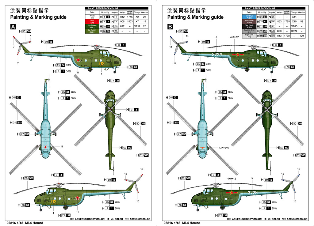 Описание М&-4 (по классификации НАТО: Hound Гончая) советский многоцелевой вертолёт, разработанный в ОКБ М&ля в начале 1950-х годов. Был первым военно-транспортным вертолётом Вооружённых сил СССР. Имел такую же компоновку, как у американского Sikorsky S-55, но превосходил его по сухой массе более чем в два раза и по грузоподъёмности чуть менее чем в два раза. Просторная грузовая кабина вмещала 1600 кг груза или 12 полностью экипированных десантников. М&-4 стал первым советским вертолётом, оснащённым грузовым люком в задней части с откидными створками и опускающимся трапом. В 19501970 гг. являлся основным транспортно-десантным вертолётом стран Организации Варшавского Договора Длина модели: 340,6 мм Диаметр ротора: 430 мм Всего деталей 150+