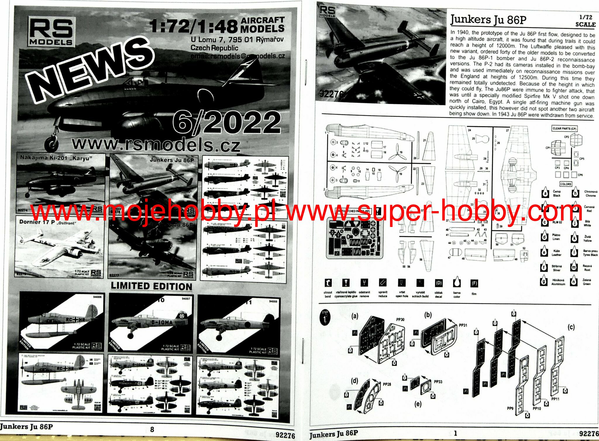 The Junkers Ju 86 was a German medium-range bomber and a low-wing passenger plane from the interwar period and World War II. The drive - in the basic version - was provided by two engines Jumo 205C-4 with 600 HP each. The flight of the prototype took place in 1934, and the serial production began in 1936, ending with the production of about 900 aircraft of this type. The deck armament consisted of three 7.92 mm machine guns. The plane could also take loads of up to 1,000 kilograms. Work on the Ju 86 began in 1934, when an order for a passenger plane (Lufthansa) and a medium-range bomber (Luftwaffe) were placed at this airline company. A relatively high pace of work on the new plane was also imposed. On the one hand, it led to the prototype test in the same year (1934), but also made it impossible to select the engines for the new machine more carefully, which became its Achilles' heel. The machine was also not liked by the pilots due to the high failure rate of the entire structure and poor visibility from the cabin - especially in the first production versions. All this resulted in the appearance of many versions of the aircraft, in which attempts were made to correct any flaws in the design - not always in a successful way. One of the first versions was the Ju 86 D (bomb version). Later, a version of the Ju 86 P-1 (high-altitude bomber powered by Jumo 207B engines) or the Ju 86 R-1 (photo reconnaissance version) appeared. Ju 86 bombers were used in combat during the Spanish Civil War (1936-1939) and during the invasion of Poland in September 1939. Ju 86 planes were exported to e.g. Bolivia, Chile and Hungary.