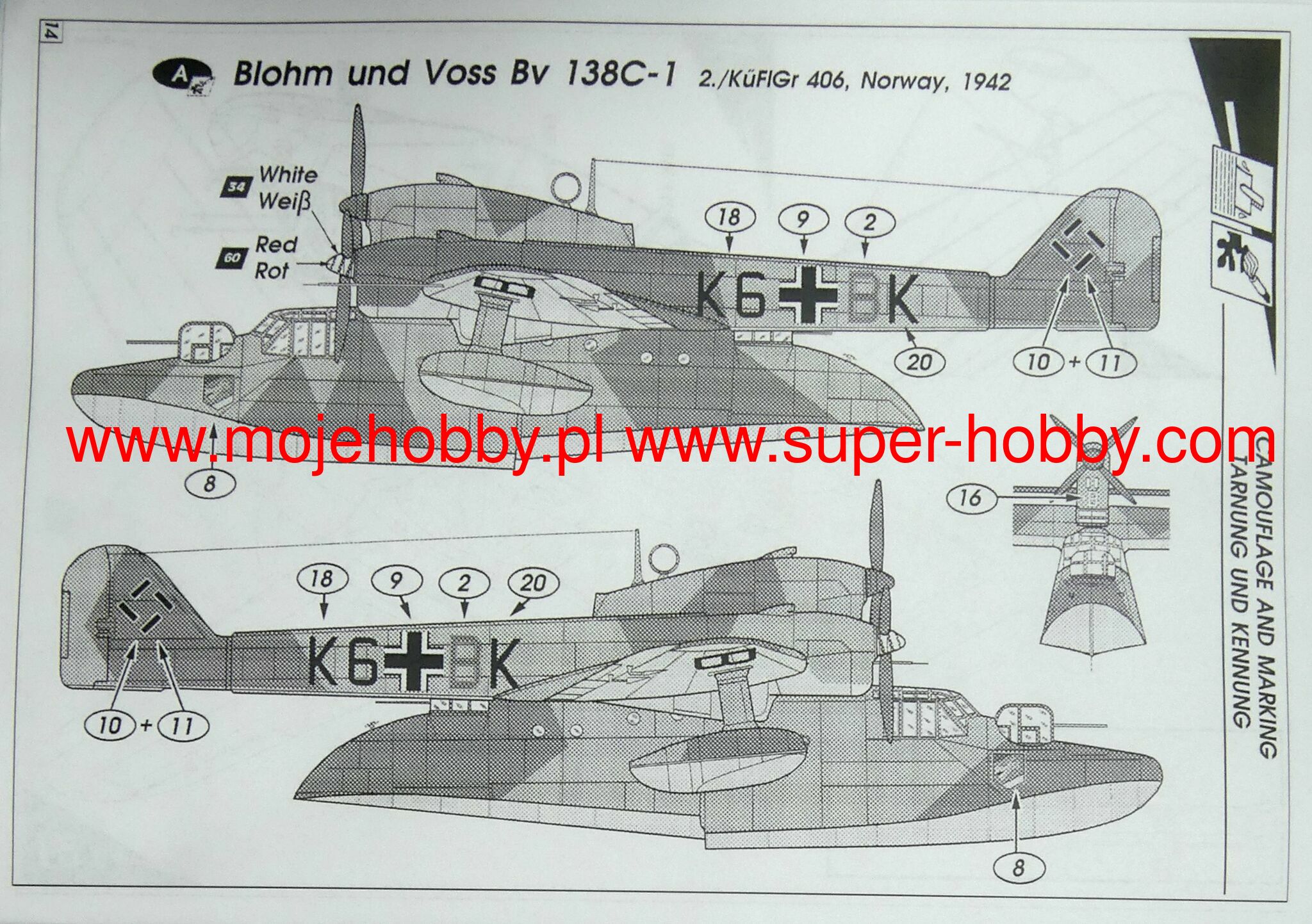Blohm und Voss Bv 138 is a German three-engine flying boat with an all-metal structure, in the high-wing configuration of the Second World War. The flight of the prototype took place on July 15, 1937, but the first line units received these machines only in 1940. The Blohm und Voss Bv 138 planes were the Luftwaffe's primary naval reconnaissance aircraft during World War II. In total, in the years 1937-1943, 297 copies of this aircraft were produced. In serial versions, the role of the power unit was performed by three 6-cylinder Junkers Jumo 205D engines with 880 HP. Many of the Blohm und Voss Bv.138 machines were equipped with the FuG 200 Hohentwiel radar, and the MS version also with a special device for searching for sea mines. Technical data: Maximum speed: 275 km / h, maximum ceiling 5000 m, maximum range: 5000 km, armament: fixed (most often) - 2 MG151 20mm cannons, 1 MG131 13mm machine gun, 3 MG15 7 machine guns , 92mm.