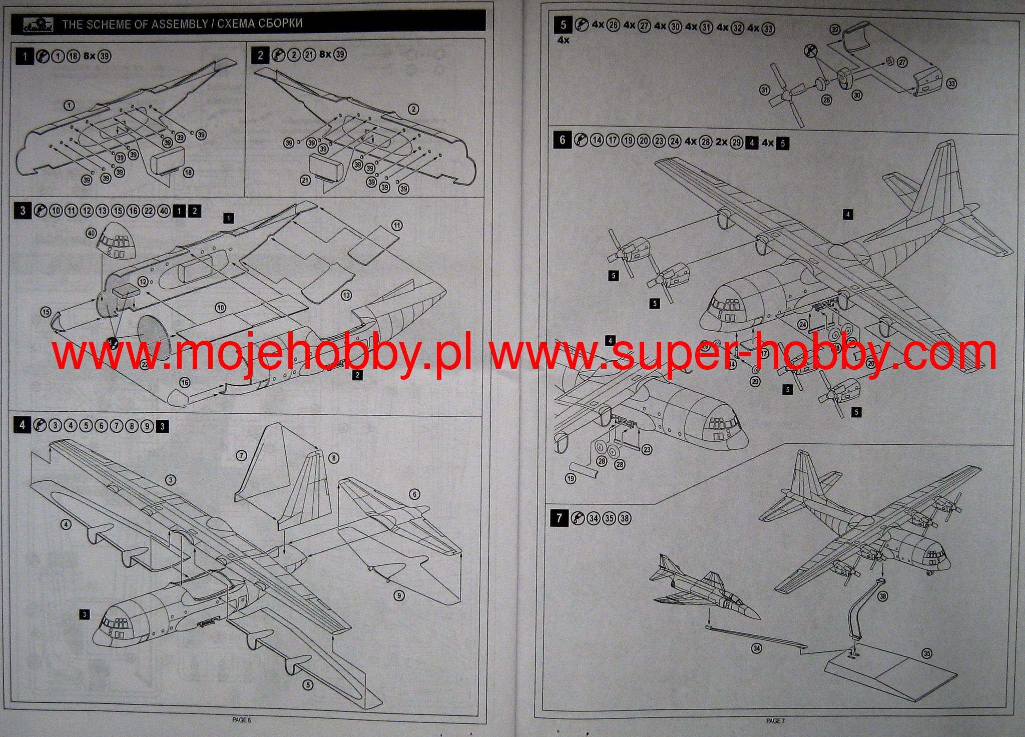 The McDonnell-Douglas F-4 Phantom is a long-range, twin-engine, two-seater multi-role fighter designed for operations in difficult weather conditions. The flight of the prototype took place on May 27, 1958, and serial production began in 1961. Originally, the F-4 was intended only as a stormtrooper, but from 1955 on, the design work went towards meeting the US Navy's need for a new on-board fighter. The F-4 Phantom turned out to be a very successful machine, produced in several versions, exported to many countries and produced under license. The first versions are models from A to D intended for fighter-bombers. The next version is the F-4E, produced since 1967 as a long-range fighter. Reconnaissance versions were also created: RF-4B, RF-4C and RF-4E. The latest versions are the F-4F and F-4G Wild Weassel - these are electronic warfare planes and designed to fight the enemy radars. The F-4 took part in the Vietnam War, the conflicts in the Middle East (1967, 1973) and the Iran-Iraq War (1980-1988). In total, 5,057 F-4 Phantom aircraft were built. Technical data (version F-4E): Maximum speed: 2370 km / h, speed of climb: 210 m / s, maximum ceiling 18300 m, maximum range: 2600 km, armament: fixed - 1 20mm M61A-1 cannon, Suspended - up to 7255 kg of bombs and rockets.The Lockheed C-130 Hercules is an American medium-range four-engine aircraft. In January 1951, the Tactical Air Command issued a specification for an aircraft intended for tactical transport. It praised a machine capable of carrying 30,000 pounds (13,620 kg) in a theater of operations and 90 soldiers or 72 paratroopers at a range of 2,000 miles (3,380 km). Four companies were invited to design such an aircraft: Boeing, Douglas, Lockheed and Fairchild. Lockheed's L-206 project was the winner. The first serial C-130 was flown on April 7, 1955 at the Dobbins base in Marietta. In the years 1961-1962, the C-130E version was created. The first C-130E flew on August 25, 1961, and the first deliveries of serial aircraft began in April 1962. C-130E - serial transport version with a reinforced center wing and undercarriage, modernized equipment. Although the C-130 Hercules aircraft are mainly used for transport tasks, they also participated in several combat operations such as "Operation Entebbe" in 1976. involving the recovery by Israeli commandos of 103 passengers hijacked by terrorists imprisoned at Entabbe airport in Uganda. In 1965. during the Second Kashmir War between India and Pakistan, the Hercules-equipped Pakistani Air Force used them, with the necessary modifications, as heavy bombers, attacking mainly bridges and concentrated Indian forces with some success. The Pakistani air force used C-130 planes from the world's highest Skardu air base to support operations on the Sjachen Glacier. The AC-130 Hercules is the heaviest and largest aircraft ever to land on an aircraft carrier. In November 1963. a machine of this type landed on the deck of the USS Forrestal aircraft carrier without the help of drag lines. Although the landing was successful, it was decided that the idea of landing such heavy machines on aircraft carriers was too risky, choosing the lighter C-2 Greyhound for the role of fleet supplies. The C-130 is the longest continuously produced aircraft to date in the history of aviation. Almost 2,300 machines of all versions have been built since 1956. Since 2009, the Polish Air Force has also been the user of the C-130 aircraft. Specifications (C-130H): Maximum speed: 592 km / h, rate of climb: 9.3 m / s, maximum ceiling 10,060 m, maximum range: 3,800 km.