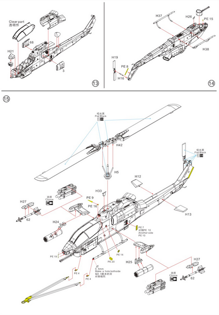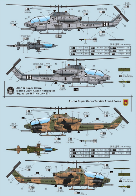The AH-1 Cobra helicopter (Bell 209) is an attack helicopter in the classic layout, using many components of its "big brother" UH-1 Huey. The first flight of the AH-1 prototype took place on September 7, 1965 and the helicopter entered mass production in the same year. During the Vietnam War, 1,126 machines of the G model were produced, of which 279 were lost in combat. Due to the very high reliability of the structure, small side profile and good performance, the helicopter remains in service to this day in the US Marine Corps. The AH-1 allowed the US Army to fully implement the theoretical assumption of airmobile infantry ("air cavalry") through the fire support of landing infantry units. Today, the AH-1 Cobra is primarily used against an armored celon. From 1965, several versions of this successful helicopter were created, including: AH-1G (basic version), AH-1J (two-engine version), AH-1Q (version armed with TOW missiles). Technical data: Top speed: 333 km / h; maximum range (depending on version): 507-574km, armament: fixed-1 20mm M197 three-barrel cannon, slung rockets, guided missiles, unguided missiles and cannon pods.