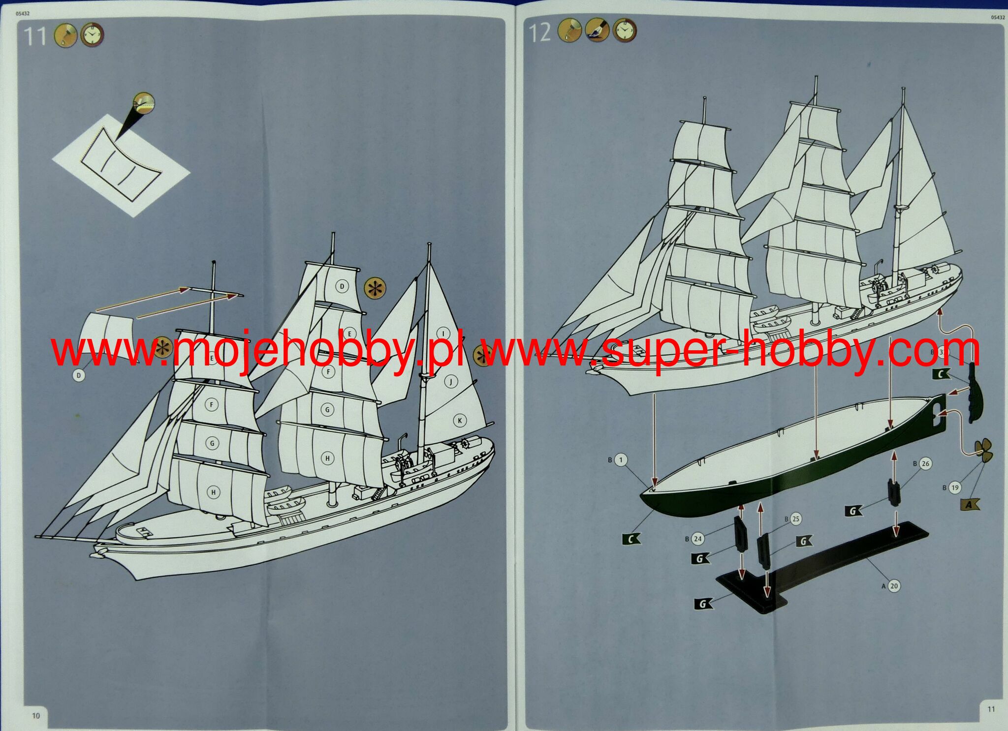 Gorch Fock was a German training sailing ship, launched in 1933. At the time of launching, the ship was 73.6 m long, 12 m wide, and her full displacement was 1,545 tons. Gorch Fock was unarmed. It was a three-masted barge, with an initial sails area of 1797 m2. It had an additional drive in the form of a diesel engine with a capacity of 360 HP. The Gorch Fock was built at the Bohm und Voss shipyard in Hamburg. Immediately after entering service, it served as a training unit in the German Navy. He was self-sunk by the crew on May 1, 1945. However, after the war, it was lifted from the seabed by Russia, renovated and incorporated into the Soviet Navy under the name Towariszcz. After a long renovation, sails replacement and the addition of a more powerful auxiliary engine, it entered service in 1951 with the home port of Odessa. After the collapse of the USSR, it served for a very short time under the flag of Ukraine, until it was finally bought by the "Tall Ship Friends Deutschland" company and since 2003 it has been in the port of Stralsund as a museum ship under the name Gorch Fock.