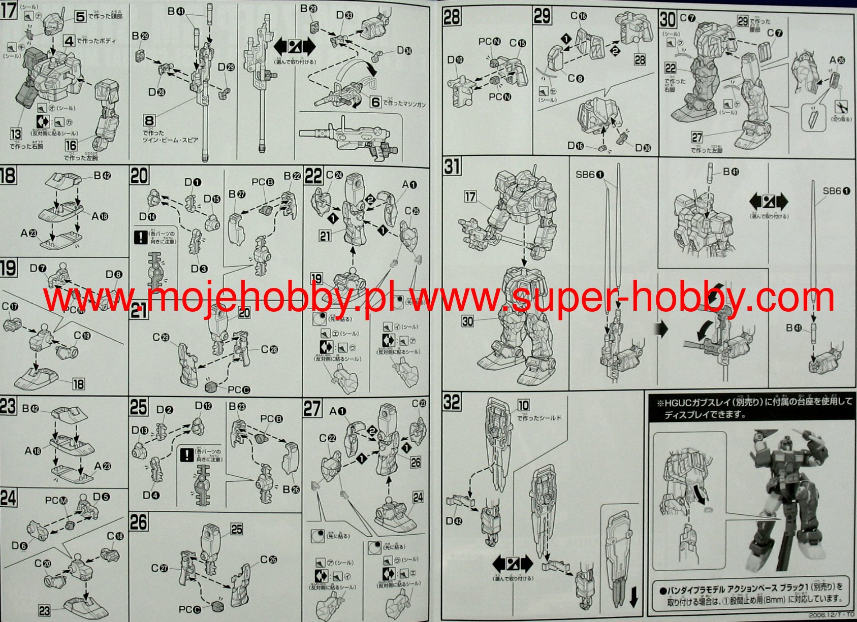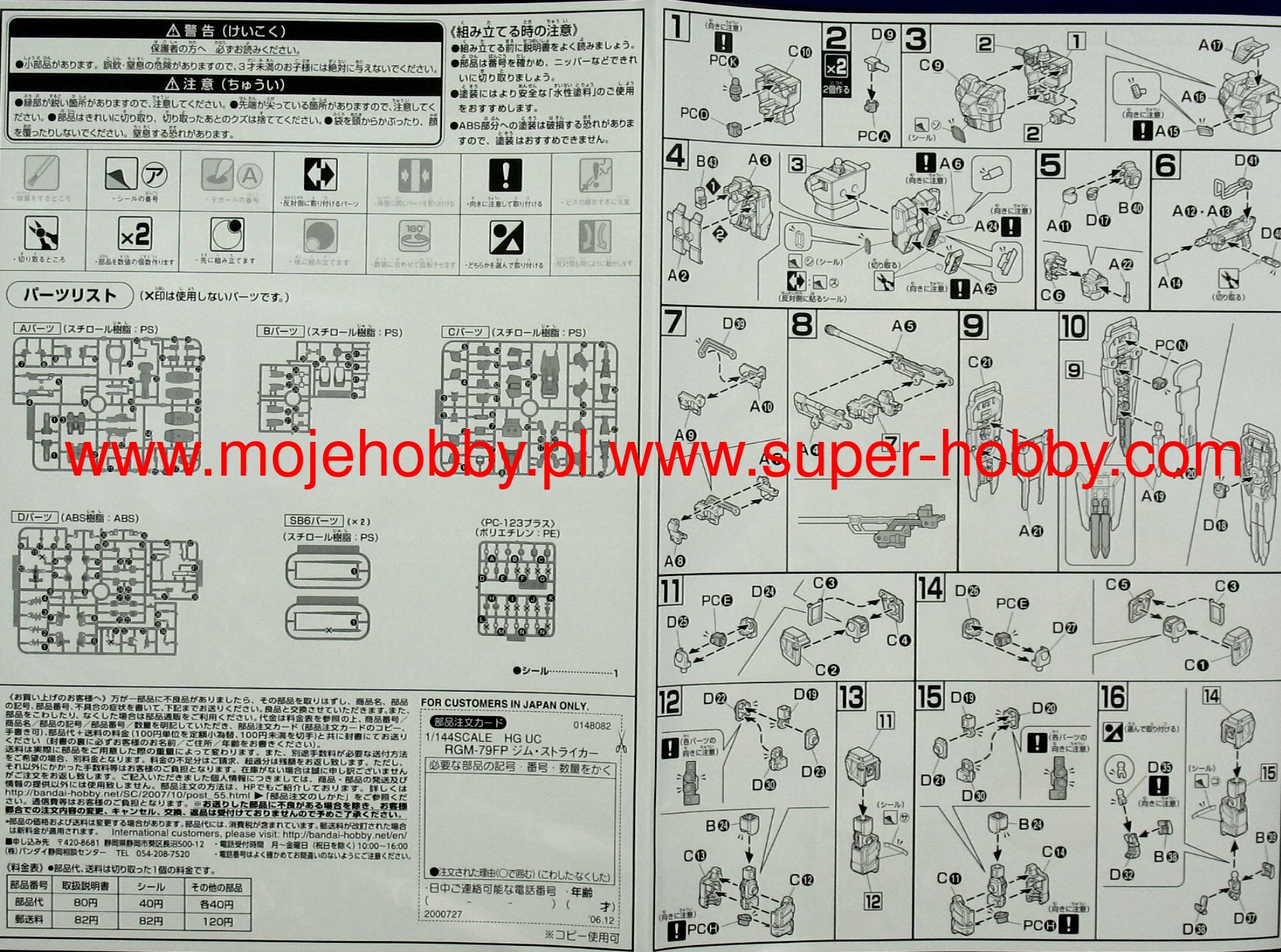 HG - High Grade Models presented in 1990 in 1:144 scale. These were groundbreaking models in the series because their quality was significantly improved compared to previous models and they had a full range of movements. Assembly Difficulty: Medium Number of elements: over 150+ Size: 13cm Contents of the package GUNPLA Model Assembly instructions Short instruction manual in Polish Stand* Stickers to enhance the model *Not all models include a stand Special features of the HG series: Scale 1/144, model size 130 mm, over 150 elements to assemble, medium level.