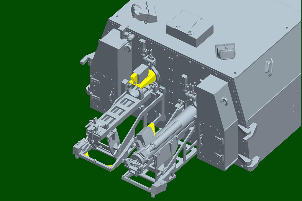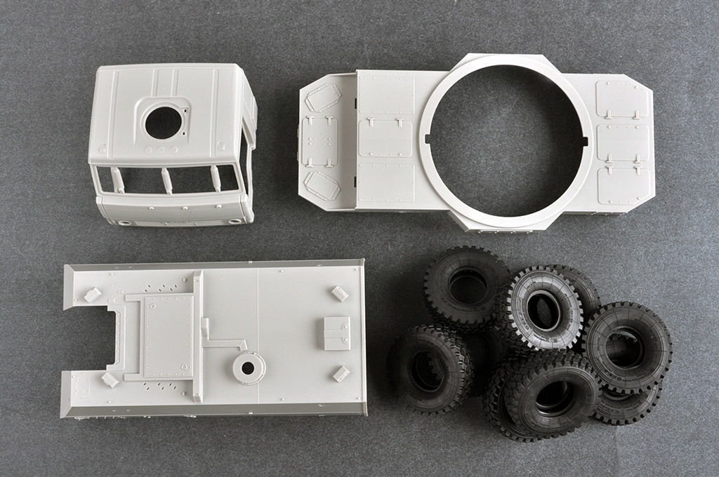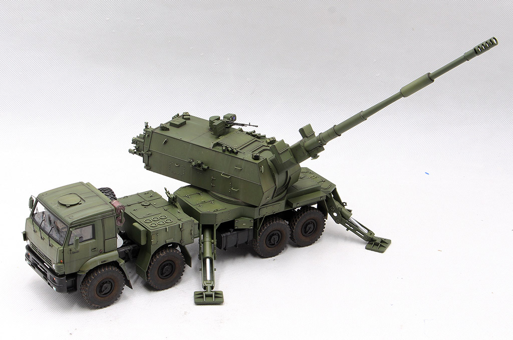Описание Самоходная артиллерийская установка 2С35-1 "Ко@лиция-СВ-КШ" Вариант Ко@лиции на шасси К@м@З - САУ 2С35-1 "Ко@лиция-СВ-КШ" размещен на шасси доработанного К@м@З-6560. В этом грузовике для установки тяжелого орудия разработчики усилили каркас рамы и бронирование кабины, в которой размещается экипаж Длина: 389,1 мм Ширина: 86,4 мм Всего деталей 850+ Фототравление