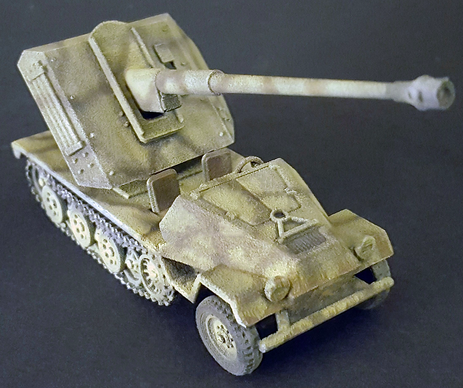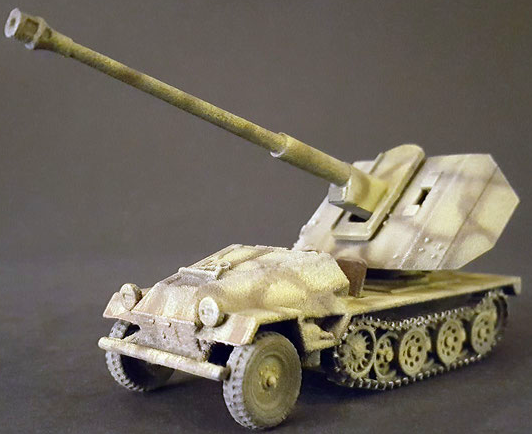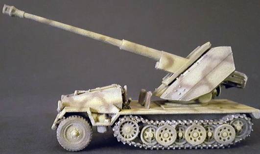 The 8.8 cm PaK43 (Panzerabwehrkanone 43) is a German 88mm anti-tank gun, developed by modifying the Flak 41 anti-aircraft gun. The gun was developed by the Krupp concern. Two chassis were used for the gun: four and two-wheeled (leFH 18 howitzer carrier). The second one was called Pak 43/41. Pak 43 was also used as an armament for the Elegant, Nashorn and Jagdpanther tank destroyers and the Royal Tiger tank (under the designation KwK 43). This cannon turned out to be a very effective weapon, capable of destroying any Allied or Soviet armored vehicle. Nevertheless, the main disadvantage of this weapon was its considerable size, which made camouflage and movement difficult, which slightly reduced the combat value of the Pak 43. Technical data: barrel length: 661cm, range (effective): 4000m, caliber: 88mm, combat weight: 4380kg, initial speed projectile: 1143 m / s (PzGr.40 / 43 shell), rate of fire: 20-25 spins / min.Sd.Kfz 251 was a German, medium, half-track armored transport from the Second World War. The first prototypes of the vehicle were made in 1935, and serial production continued in 1939-1945, ending with the production of about 14,500 units. The Sd.Kfz 251 was powered by a six-cylinder engine Maybach HL 42 TURKM with 100 hp . Sd.Kfz 251 was developed as a new, basic half-tracked transporter of the German armed forces. Its design was based on the Sd.Kfz.11 heavy tractor, with several elements changed in the adapted chassis: a new fuel tank was added, the location of the steering wheel, and the exhaust system was redesigned. In the course of serial production, four basic versions of the Sd.Kfz 251 (Ausf. A, B, C and D) were created, however, in terms of details related to the production process (especially the C version) and a slightly different arrangement of elements inside the fuselage. During World War II, more than 20 variants and versions of the Sd.Kfz 251 were created. The chronological first was the Sd.Kfz 251/1, which was the basic version, armed with two MG34 or MG42 machine guns and capable of carrying up to 10 landing troops. In 1941, a version of the Sd.Kfz 251/2 was developed, armed with an 80 mm mortar. There was also a version of the Sd.Kfz 251/3, which was a communication and radio communication vehicle with various sets of radio stations and antennas. In 1942, the Sd.Kfz 251/9 Stummel variant was developed, armed with a 75mm StuK 37 short-barrel gun. More interesting versions were the Sd.Kfz 251/16 with two flamethrowers or the Sd.Kfz 251/20 UHU equipped with an infrared radiation emitter and intended for targeting at night. Cars Sd.Kfz 251 of all versions served primarily in armored divisions and armored grenadiers on virtually all fronts of World War II: from the September campaign (1939), through the campaign in France (1940), fighting in the Balkans and North Africa (1941-1943) after fights on the Eastern (1941-1945) and Western (1944-1945) fronts.