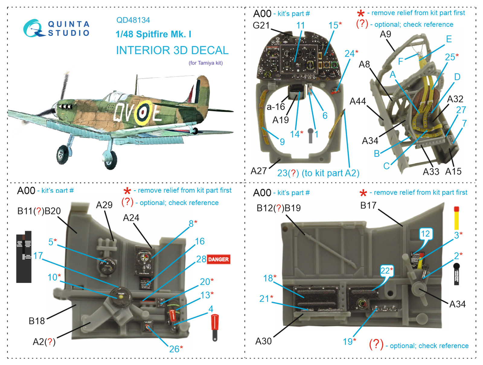 Купить QD48134 ДЕКАЛИ 3D ДЕКАЛЬ ИНТЕРЬЕРА SPITFIRE MK.I TAMIYA (1/48)