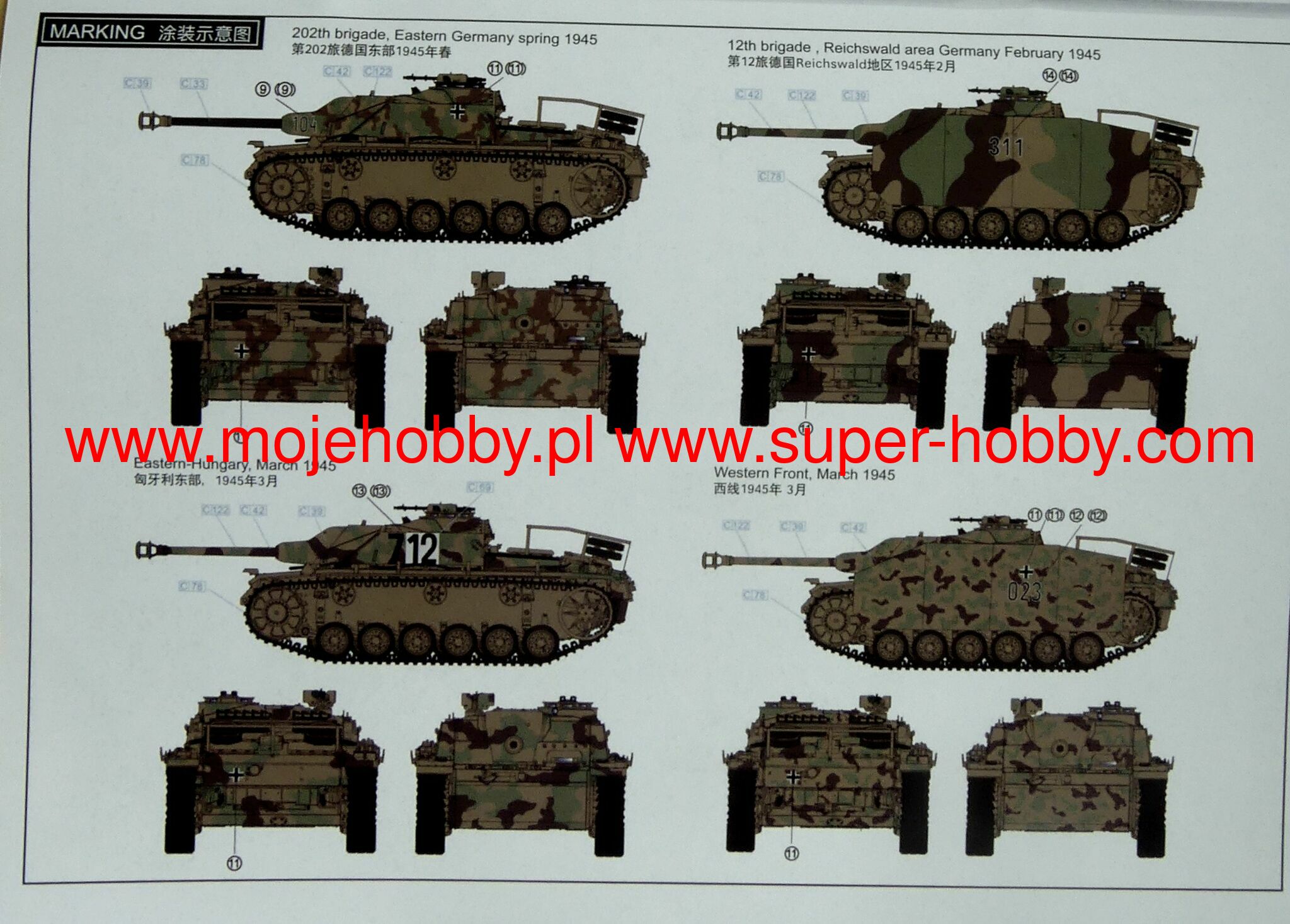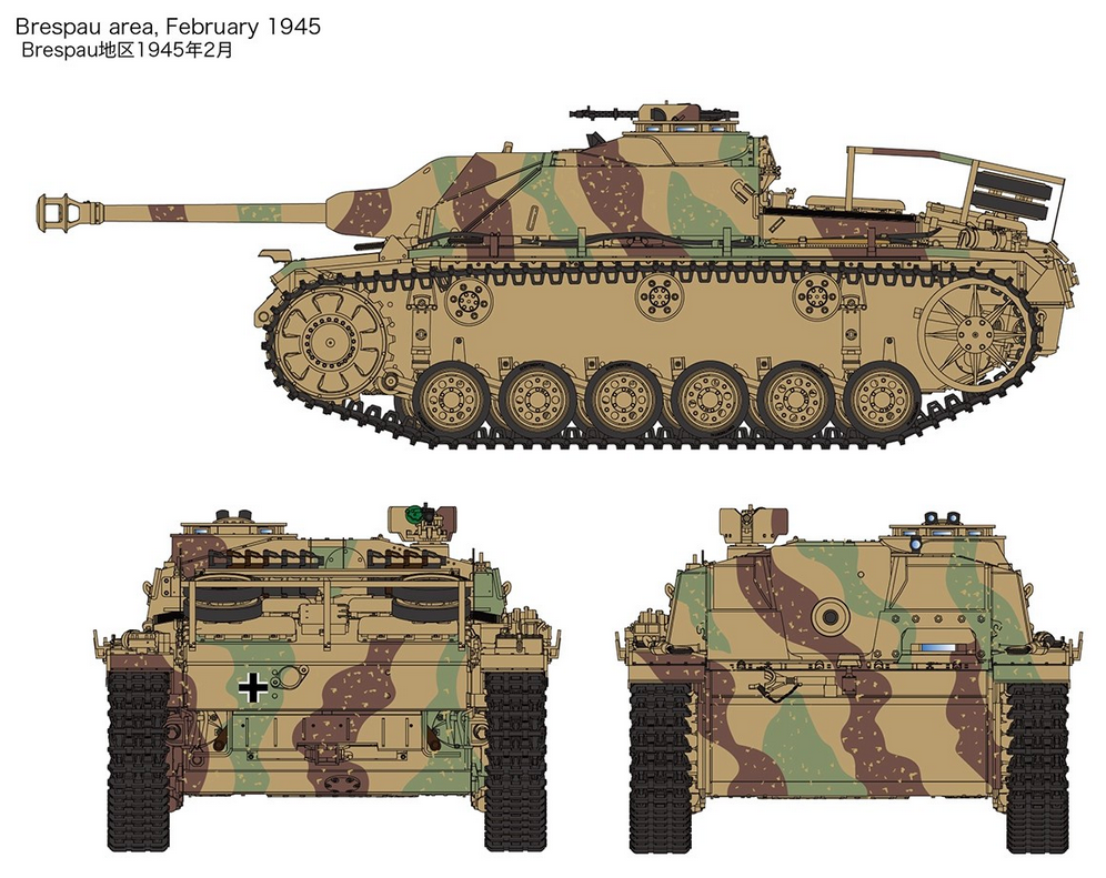 The StuG III (Sturmgeschutz III) was a German armored gun from the Second World War. The first prototypes of the vehicle were built in 1937, and serial production continued in the period 1940-1945, ending with the production of about 10,300 vehicles. The StuG III in the E version was powered by a single Maybach HL 120 TRM engine with 300 hp. It was armed (version E) with a 75mm short-barreled cannon. and 1 MG34 machine gun cal. 7.92 mm. The StuG III was created as a result of an initiative undertaken by Erich von Manstein, who in a letter to General Beck in 1935 signaled the need to create assault artillery for the advancing infantry within the mechanized units of the Wehrmacht. Ultimately, the order to design a new vehicle was commissioned to Daimler-Benz, which in turn used the chassis of the PzKpfw III Ausf. B. Several versions of the StuG III gun were produced during series production. Chronologically, the first was the A version, armed with the 75mm Stuk 37 L / 24 gun and based on the chassis of the PzKpfw III Ausf tanks. F and G and produced from the beginning of 1940. Soon after, version B was created - the first one to be produced on a large scale, which differed only slightly from the version A. In 1941, version D, which had better armor and sights, entered the production. The E version was quickly created, which was the first to receive additional armament in the form of the MG34 machine gun. At the beginning of 1942, the StuG III underwent a major modification to become actually a tank destroyer by installing a long-barreled 75mm StuK 40 L / 48 gun. The designation of the car was also changed to StuG 40. In the period 1940-1945, the StuG III served on almost all fronts on which the German army fought. It turned out to be a very useful weapon, cheap to produce and, most importantly, effective. It is estimated that different versions of the StuG were responsible for the destruction of approximately 20,000 Soviet tanks and armored vehicles in 1941-1945.