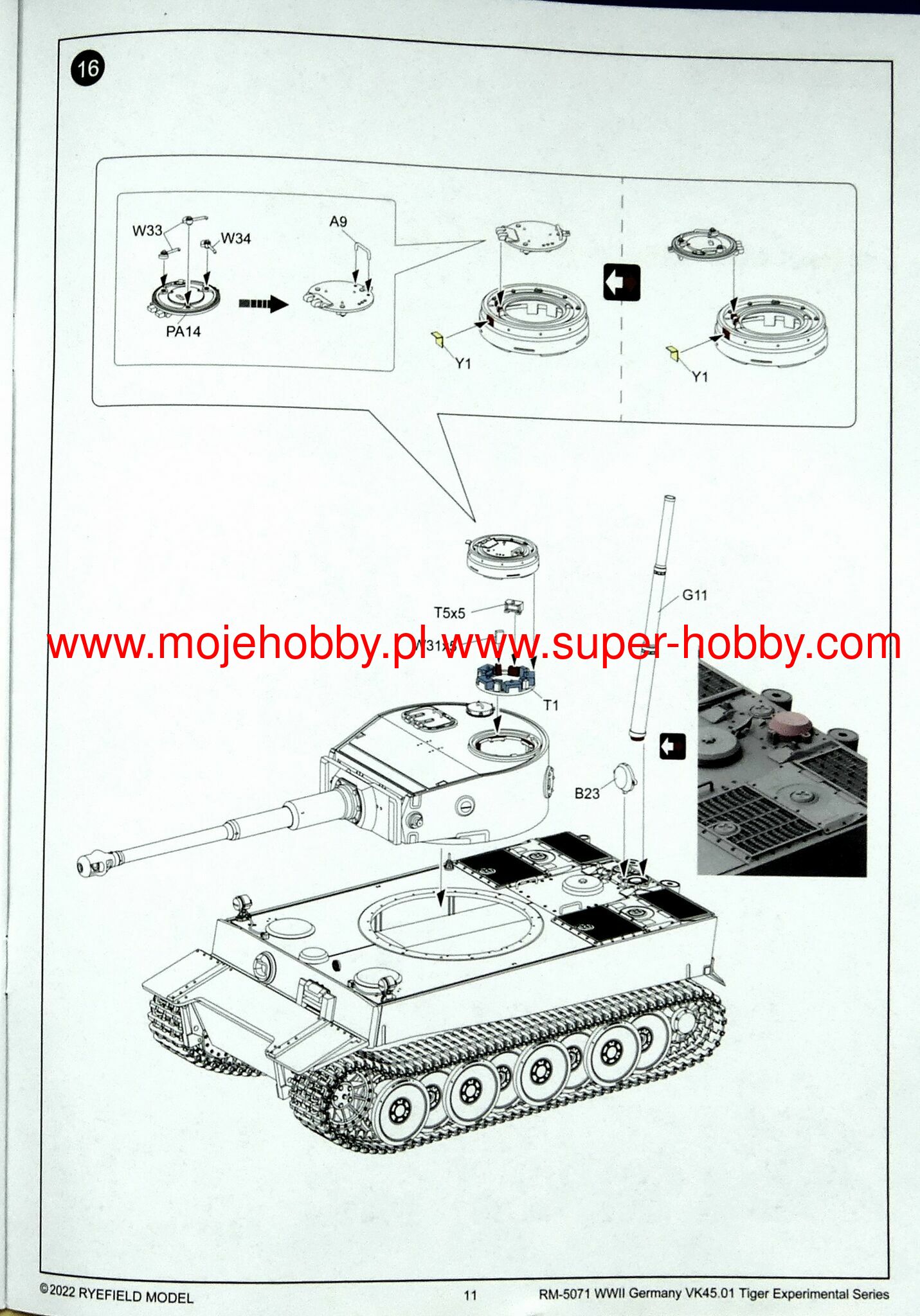 PzKpfw VI Tiger (P)[inne nazwy: VK4501(P) albo Porsche Typ 101 albo w skrócie Tiger (P)] was a German prototype heavy tank from the Second World War. The prototype of the car was built in 1942, but never entered mass production. The car was 9.54 meters long and 3.4 meters wide. The tank was powered by two Porsche Type 101 TRM engines, 310-320 HP each. It was armed with 1 88mm KwK 36 L / 56 gun and 2 7.92mm MG 34 machine guns. . The Tiger (P) was developed for the needs of the German ground forces as a new heavy tank capable of fighting the Soviet T-34 at long distances. Its main advantage on the battlefield was to be powerful firepower and very strong armor. The presented car was a specific development of the VK3001 (P) project, and compared to it, it had, among other things, clearly thickened frontal armor. In the course of field tests, the Tiger (P) turned out to be a highly underdeveloped structure, highly fail-safe and characterized by low mobility in the field. One of the main problems was the use of a double power unit, which tended to overheat and seize. Finally, Tiger (P) did not enter mass production and lost the competition with the car produced by the Henschel plant. It is worth noting that the manufactured chassis for the Tiger (P) were used for the production of Ferdinand (Sd.Kfz. 184) tank destroyers.