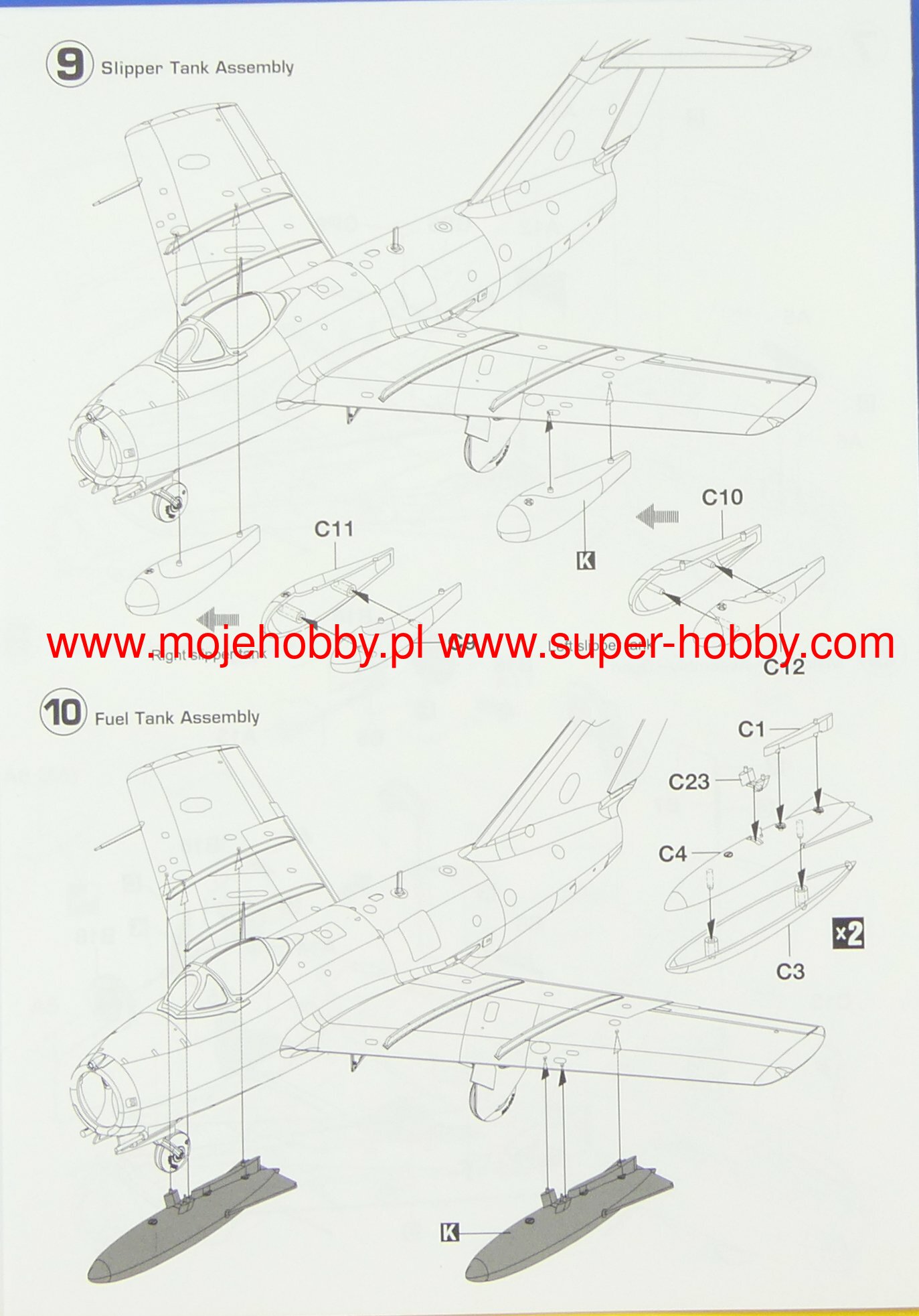 The Mikojan-Guriewicz MIG-15 is a Soviet, single-engine, wide-slant, full-metal jet fighter known by the NATO term Fagot or Midget. The flight of the prototype took place in December 1947, and the entry into the line in 1949. In total, in the USSR and under license (including Poland, as the Lim-1 and Lim-2), over 18,000 machines of all varieties and versions of the MIG-15 were created. lack of a proper engine. Only after copying the British Rolls-Royce Nene Mk.I and using it in the new airframe, it was possible to fly the future MIG 15. The basic versions are the MIG-15P (all-weather fighter), MIG-15UTI (training machine , two-seater), MIG-15SB (fighter-bomber) and MIG-15bis (fighter with the new WK-1 engine). The MIG-15 became a legendary aircraft during the Korean War (1950-1953), where it outclassed Western fighter machines until the arrival of the F-86 Saber. MIG-15 also took part in min. the Middle East conflicts (1966-1967) or the Suez crisis (1956). Technical data (MIG-15bis version): length: 10.1m, wingspan: 10.1m, height: 3.7m, maximum speed: 1075km / h, rate of climb: 50m / s, maximum range: 1310km, maximum ceiling 15500m armament: fixed - 2 NR-23 cannons, caliber 23 mm and 1 Nudelman N-37 cannon, caliber 37 mm, suspended - 200 kg of cargo.