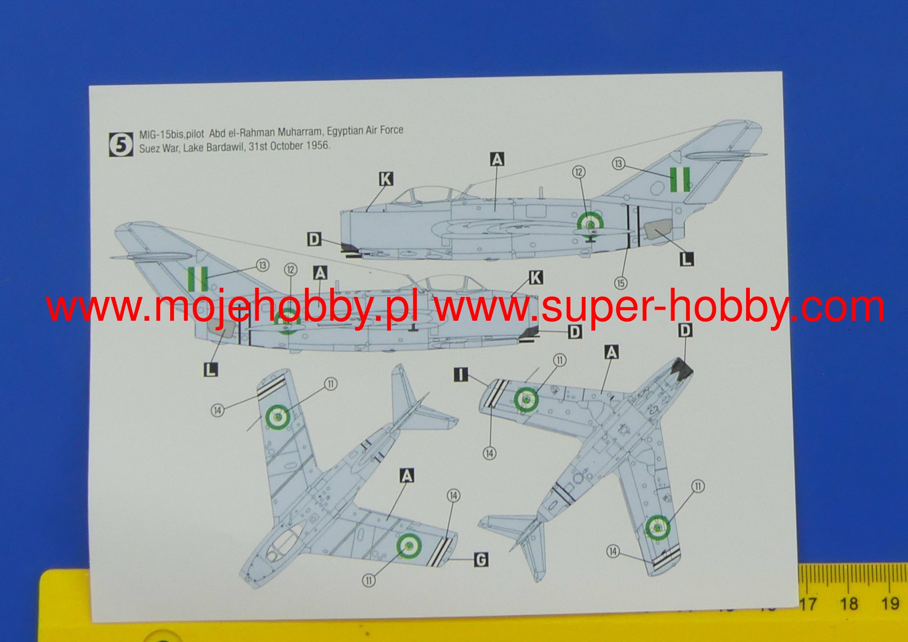 The Mikojan-Guriewicz MIG-15 is a Soviet, single-engine, wide-slant, full-metal jet fighter known by the NATO term Fagot or Midget. The flight of the prototype took place in December 1947, and the entry into the line in 1949. In total, in the USSR and under license (including Poland, as the Lim-1 and Lim-2), over 18,000 machines of all varieties and versions of the MIG-15 were created. lack of a proper engine. Only after copying the British Rolls-Royce Nene Mk.I and using it in the new airframe, it was possible to fly the future MIG 15. The basic versions are the MIG-15P (all-weather fighter), MIG-15UTI (training machine , two-seater), MIG-15SB (fighter-bomber) and MIG-15bis (fighter with the new WK-1 engine). The MIG-15 became a legendary aircraft during the Korean War (1950-1953), where it outclassed Western fighter machines until the arrival of the F-86 Saber. MIG-15 also took part in min. the Middle East conflicts (1966-1967) or the Suez crisis (1956). Technical data (MIG-15bis version): length: 10.1m, wingspan: 10.1m, height: 3.7m, maximum speed: 1075km / h, rate of climb: 50m / s, maximum range: 1310km, maximum ceiling 15500m armament: fixed - 2 NR-23 cannons, caliber 23 mm and 1 Nudelman N-37 cannon, caliber 37 mm, suspended - 200 kg of cargo.