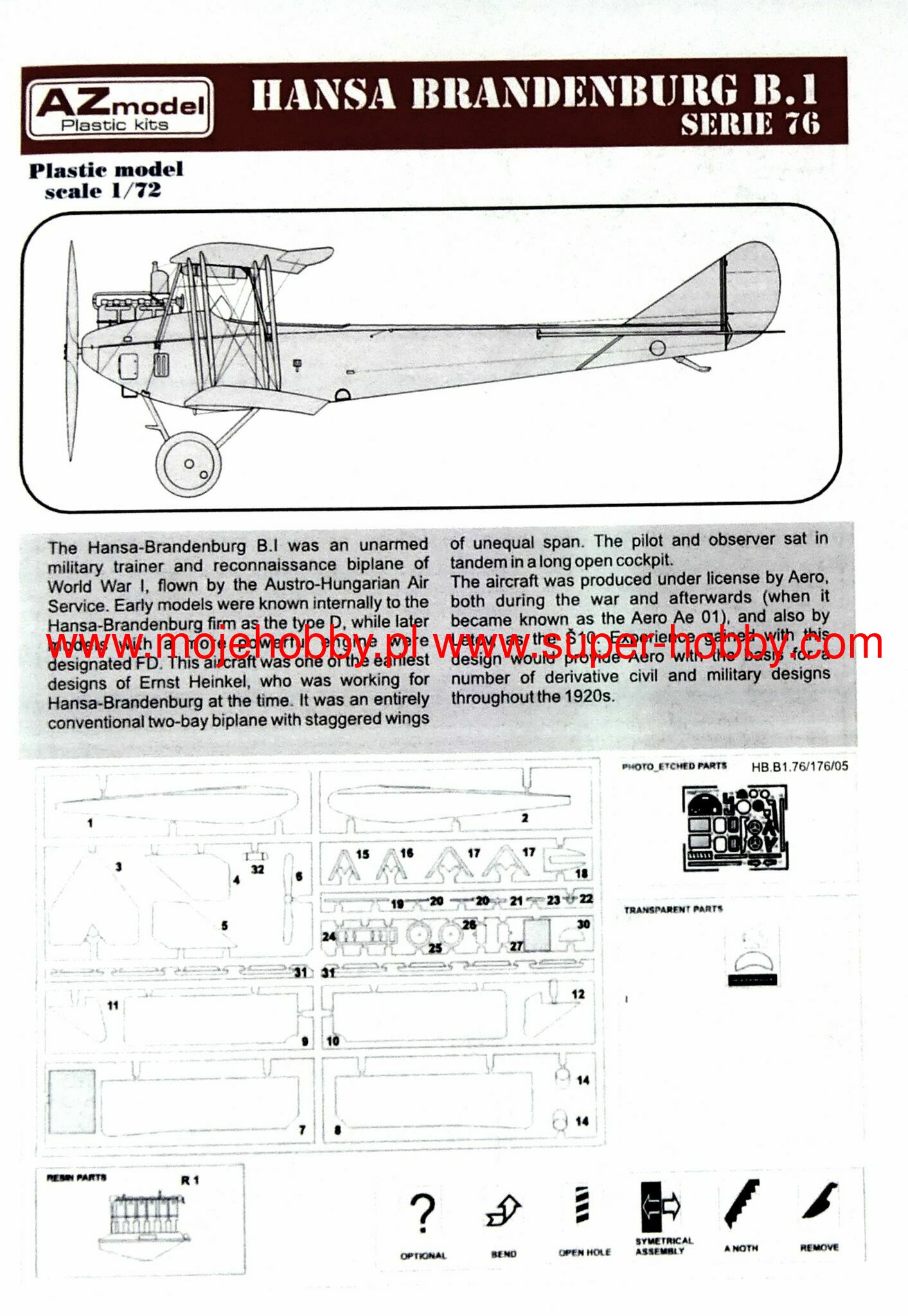 The Hansa-Brandenburg BI was a German training and reconnaissance aircraft in a mixed biplane structure with a fixed undercarriage from the First World War. The drive was provided by a variety of engines, but the most common - especially in the first production batches - was a single Benz Bz.II engine with a capacity of 101 HP. The flight of the prototype took place in 1915 and in the same year mass production began, which led to the creation of about 1,500 machines of this type. The plane did not have the training version of the on-board armament. Hansa-Brandenburg BI was constructed by the later famous air constructor Ernest Heinkel based on the Hansa-Brandenburg D aircraft. The new machine was characterized by considerable ease of piloting, excellent flight stability and decent performance as at the beginning of the First World War. Two versions of the aircraft were quickly developed: a training one with the designation BI and an observation-bomber with the designation CI The differences between the two versions were very small and concerned the shape of the tail, wingspan and the addition of weapons in the CI version German military aviation purchased only small production batches of the Hansa-Brandenburg BI aircraft , on the other hand, Austria-Hungary expressed a lot of interest in it and undertook its license production at the Kuk Fliegerarsenal Flugzeugwerke plant in the city of Fischamend. After World War I, a dozen or so of these aircraft were taken over by the Polish air force, which used them in the Polish-Bolshevik war (1919-1921). In 1919, their production also started at the Military Aviation Works in Kraków and Lviv. In total, about 70 aircraft of this type were built there.