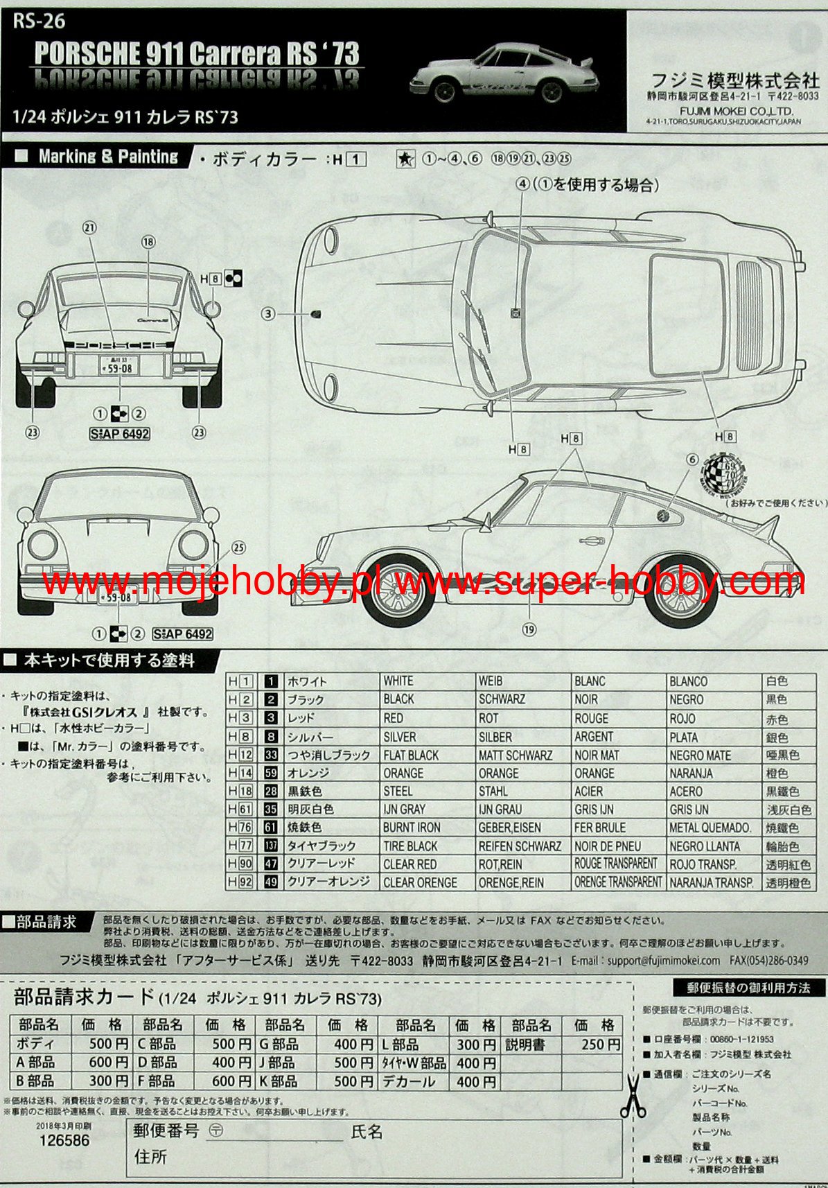 PORSCHE 911 CARRERA RS `73 fujimi mokei 1/24