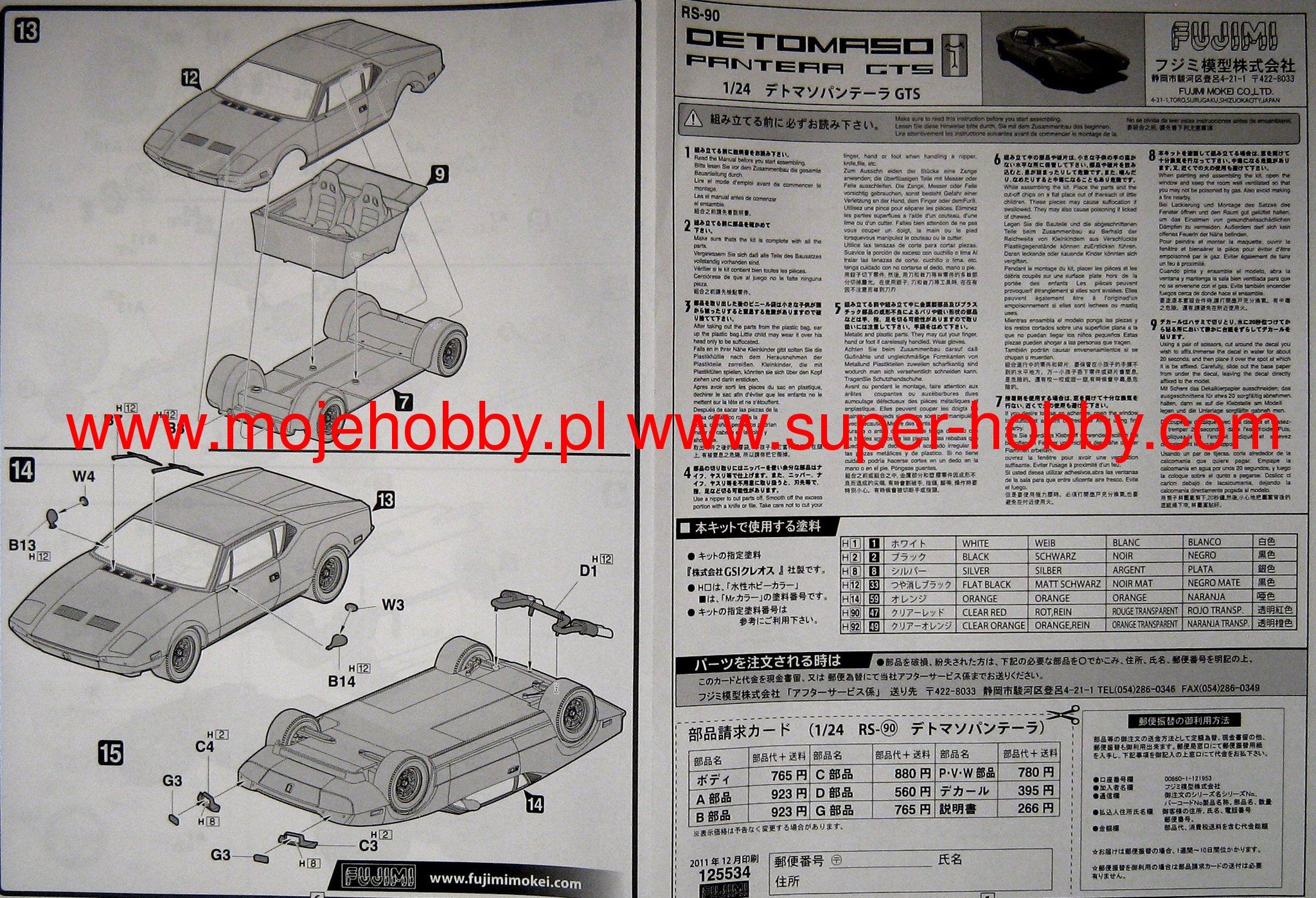 DE TOMASO PANTERA GTS fujimi mokei 1/24