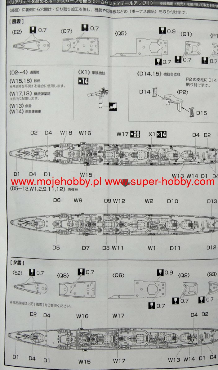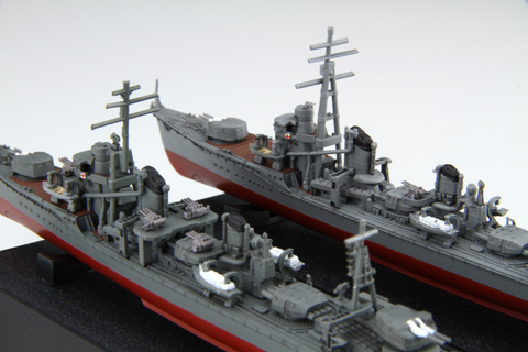 Yugumo was a Japanese destroyer whose keel was laid in 1940, launched in March 1941, and commissioned in the Imperial Japanese Navy in December 1941. The length of the ship at the time of launching was 119 m, width 10.8 m, and the actual full displacement - 2,520 tons. Destroyer Yugumo's top speed was up to 35.5 knots. The main armament at the time of the launch was 6 127 mm guns in three twin turrets, and the secondary armament was 4 25 mm cannons, depth charge launchers and eight 610 mm torpedo tubes with eight spare torpedoes. The Yugumo was the first destroyer of the type with the same name - the Yugumo. Units of this type were created as part of the 1939 and 1941 Japanese fleet expansion program. Units of this class were in fact an improved Kagero type: they were slightly larger, with new main artillery turrets and an extended stern. The stock of depth charges was also increased. However, they had the same engine room, similar ship layout, and identical main and torpedo armaments. The weak anti-aircraft armament, which was systematically strengthened during the war in the Pacific, was still a drawback. The first major battle in which destroyer Yugumo took part in World War II was the Battle of Midway (June 1942), where she was part of the Japanese carrier's protection team. From the second half of 1942, Yugumo served in the area of the Solomon Islands archipelago, fighting in the struggle for Guadalcanal, taking part in the Battle of the Santa Cruz Islands (October 1942) there. The ship also took part in the evacuation of Japanese troops from Gudalcanal in February 1943, from Kolombangary Island in October of the same year. Destroyer Yugumo was sunk shortly after this last action - in the battle of Vella Lavella on October 7, 1943.Kazagumo was a Japanese WWII destroyer keel laid in December 1940, launched in September 1941, and commissioned in the Imperial Japanese Navy in March 1942. The length of the ship at the time of launching was 119.2 m, width 10.8 m, and the actual full displacement - 2,520 tons. The destroyer's maximum speed was 35-36 knots. The main armament was 6 127 mm guns in three twin turrets and eight 610 mm torpedo tubes with eight spare torpedoes. During the course of the war in the Pacific, anti-aircraft weapons were significantly strengthened, which at one point in the service of the destroyer consisted of 28 25 mm cannons and 4 13.2 mm machine guns. Kazagumo was the fourth of nineteen Yugumo-class destroyers built. Units of this type were created as part of the 1939 and 1941 Japanese fleet expansion program. Units of this class were in fact an improved Kagero type: they were slightly larger, with new main artillery turrets and an extended stern. However, they had the same engine room, similar ship layout, and identical main and torpedo armaments. The weak anti-aircraft armament, which was systematically strengthened during the war in the Pacific, was still a drawback. Destroyer Kazagumo began her participation in the Pacific War with the Battle of Midway in June 1942, in which she rescued Japanese survivors from sinking aircraft carriers. In the second half of the same year, he operated mainly in the Solomons region, taking part, among others, in the battle near the island of Santa Cruz (October 1942). The unit also took an active part in the evacuation of Japanese troops from the island of Guadalcanal in February 1943. In the period from the end of April to the beginning of June 1943, the unit was overhauled in Japan as a result of being hit by a mine. Shortly after returning to service, Kazagumo was directed to the Aleutian region, and in October 1943 he took part in the naval battle near Vell Lavell. The destroyer Kazagumo was sunk on June 8, 1944 as a result of a torpedo attack by the USS Hake submarine.