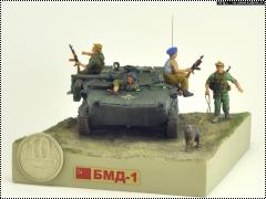 Сборная модель от компании Моделист. БМД-1 - боевая машина десантная первая. Советская боевая гусеничная плавающая машина, предназначенная для использования в воздушно-десантных войсках и десантирования парашютным способом с военно-транспортных самолётов. Принята на вооружение в 1969 году. Работа по созданию боевой машины пехоты для вооружения Воздушно-десантных войск СССР была начата по инициативе командующего ВДВ Василия Филипповича Маргелова. Для обеспечения действий десантных войск требовалась машина, обеспечивающая как транспортировку десантников и ведение ими боя из-под брони на радиоактивно заражённой местности, так и борьбу с бронетехникой противника. Серийное производство БМД-1 было начато на Волгоградском тракторном заводе в 1968 году, ещё до официального принятия на вооружение. Броневой корпус представляет собой жёсткую коробчатую конструкцию сложной формы, собранную при помощи сварки из катаных листов алюминиевой брони. Десант и экипаж полностью защищен от осколков и пуль калибра 7,62 мм, а лобовая проекция машины выдерживает попадание 12,7-мм бронебойных пуль. Специально для авиадесантирования БМД-1 были разработаны многокупольная парашютная система Кентавр, и парашютно-реактивная однокупольная система Реактавр. 5 января 1973 года впервые в мировой истории было осуществлено успешное десантирование людей внутри боевой машины. Ни одна армия мира так и не освоила такой способ десантирования. БМД-1 в массовом порядке принимала участие в войне в Афганистане в 19791989 гг., во всех вооруженных конфликтах на территории СССР, СНГ и ряда развивающихся стран с 1979 года и по настоящее время, где зарекомендовала себя как надежная боевая машина крылатой пехоты. (Моделист 307265)