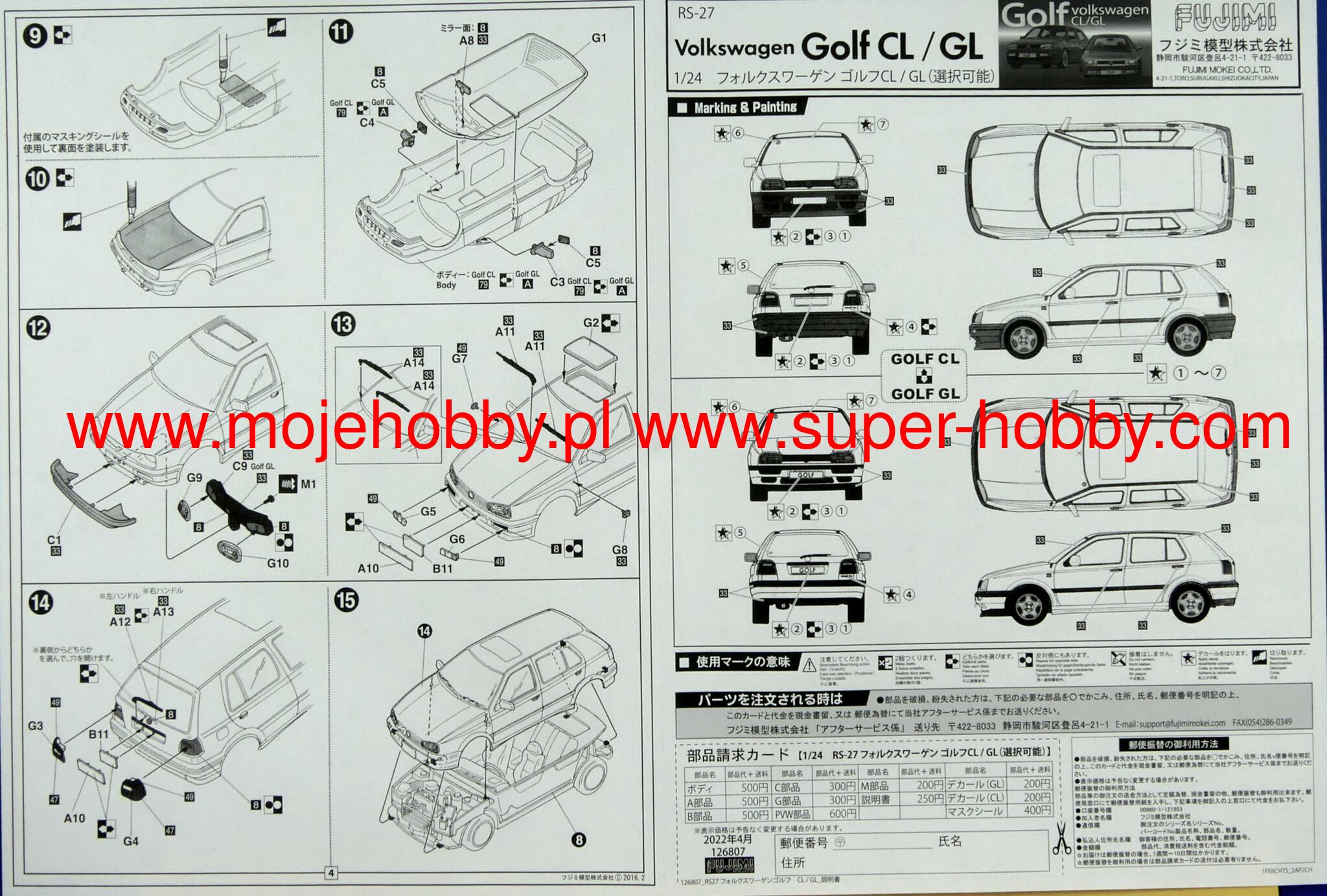 1/24 VOLKSWAGEN GOLF MK3 CL/GL