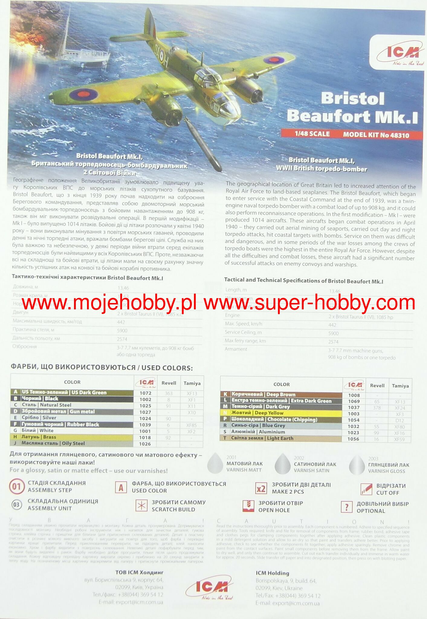 ICM САМОЛЕТ BRISTOL BEAUFORT MK.I TORPEDO-BOMBER icm 1/48