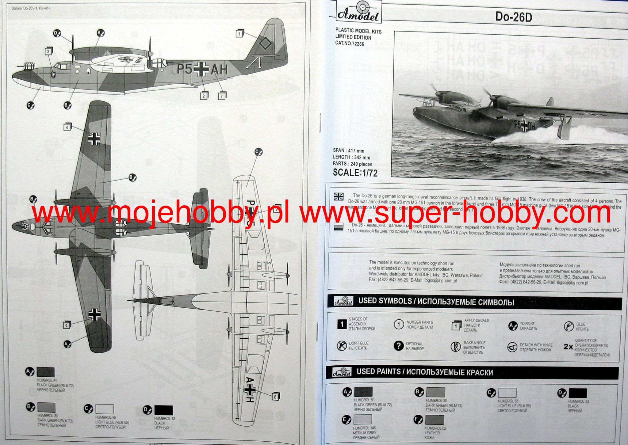 The Dornier Do 26 was a German long-range seaplane in a metal structure spine-wing configuration. The drive was provided (in the C version) by four Junkers Juno-205 engines up to 880 HP each. The flight of the prototype took place in 1938, and serial production began in the same year and lasted only until 1939, ending with the production of only 6 examples of this aircraft. By 1945, the last Do 26 had been withdrawn from the Luftwaffe. The Dornier Do 26, sometimes referred to as "the most beautiful seaplane in the history of aviation", was created in connection with a very unusual order by Lufthansa for a sea-going mail plane. During World War II, the Luftwaffe became interested in Do 26. Three versions of the aircraft were developed in the course of production: Do 26A and Do 26B were civilian versions. In 1939, a military version (DO 26C) was created, powered by Jumo 205 engines and armed with a 20 mm cannon and three MG15 machine guns. All the Do 26 produced took part in the 1940 operation to seize Norway. Three machines were lost in the course of this campaign.