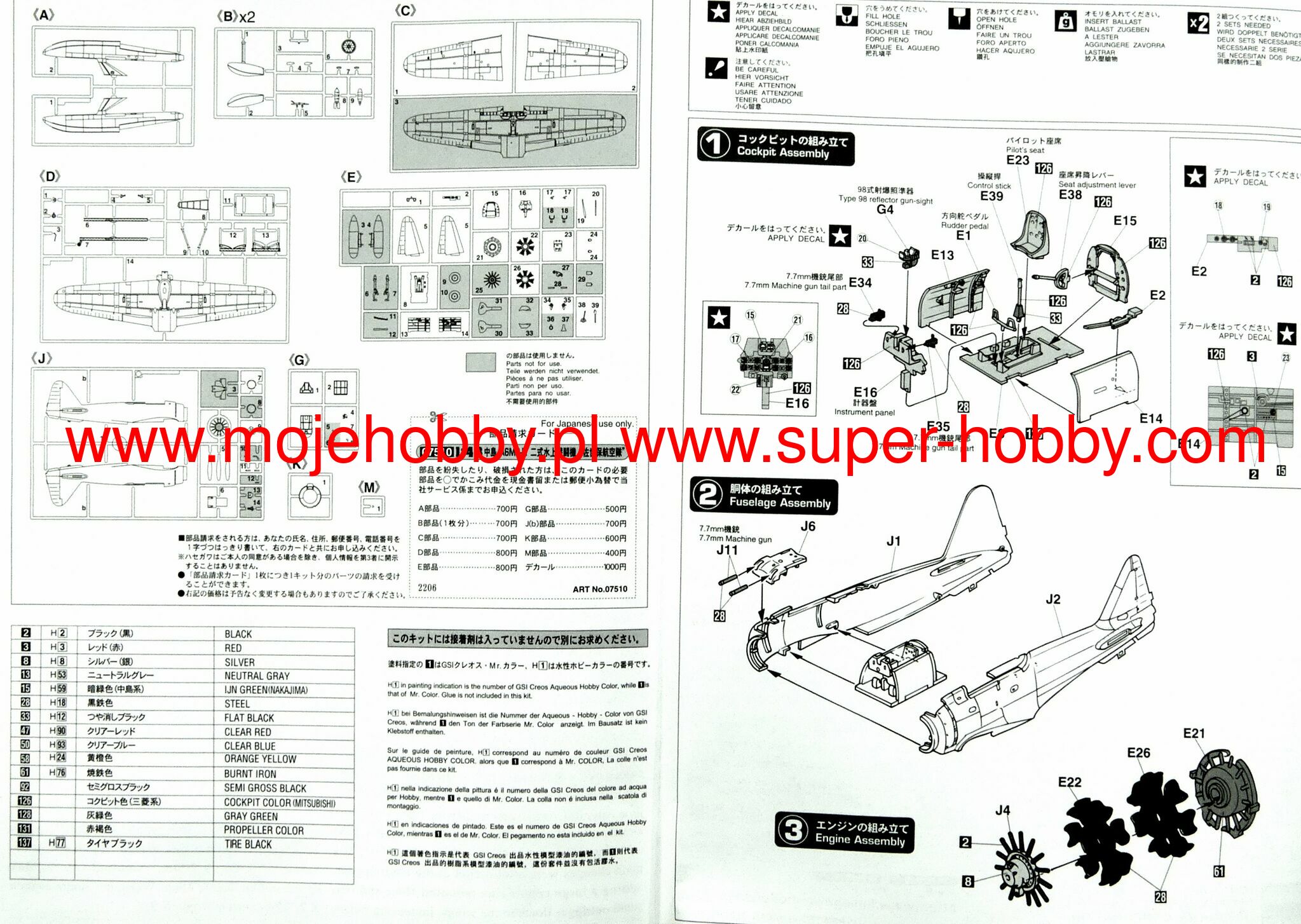 "NAKAJIMA A6M2-N TYPE 2 FIGHTER SEAPLANE (RUFE) SASEBO FLYING GROUP HASEGAWA"