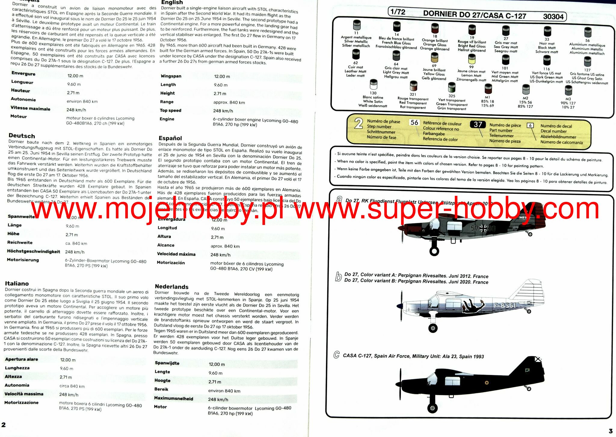 The Dornier Do 27 is a German civilian multi-role, metal-structure high-wing aircraft. The drive is provided by a single Avro-Lycoming GO-480-B1A6 engine with 274 HP. The flight of the prototype took place in 1955, and serial production began in the same year and continued in 1965, ending with the production of over 600 copies of this aircraft. The Dornier Do 27, was originally designed as the successor to the Do 25 for the Spanish Air Force as a new light multi-role reconnaissance aircraft. However, Dornier quickly saw the possibility of offering the Do 27 to other military customers as well. This was due to the very solid structure of the machine, its good performance, the possibility of a short take-off and landing (STOL) and low minimum speed. Finally, the Do 27 was sent to the air forces of Spain, Germany and Portugal. Especially the latter user used it intensively during the fighting in his then colonies in Angola and Mozambique in the 1960s and 1970s. It is worth noting that the Do 27 was the first mass-produced aircraft in West Germany after 1945.