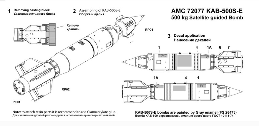 НАБОР ДЛЯ ДОРАБОТКИ РОССИЙСКАЯ КОРРЕКТИРУЕМАЯ АВИАЦИОННАЯ БОМБА КАЛИБРА 500 КГ КАБ-500С-Э(2 ШТ.)