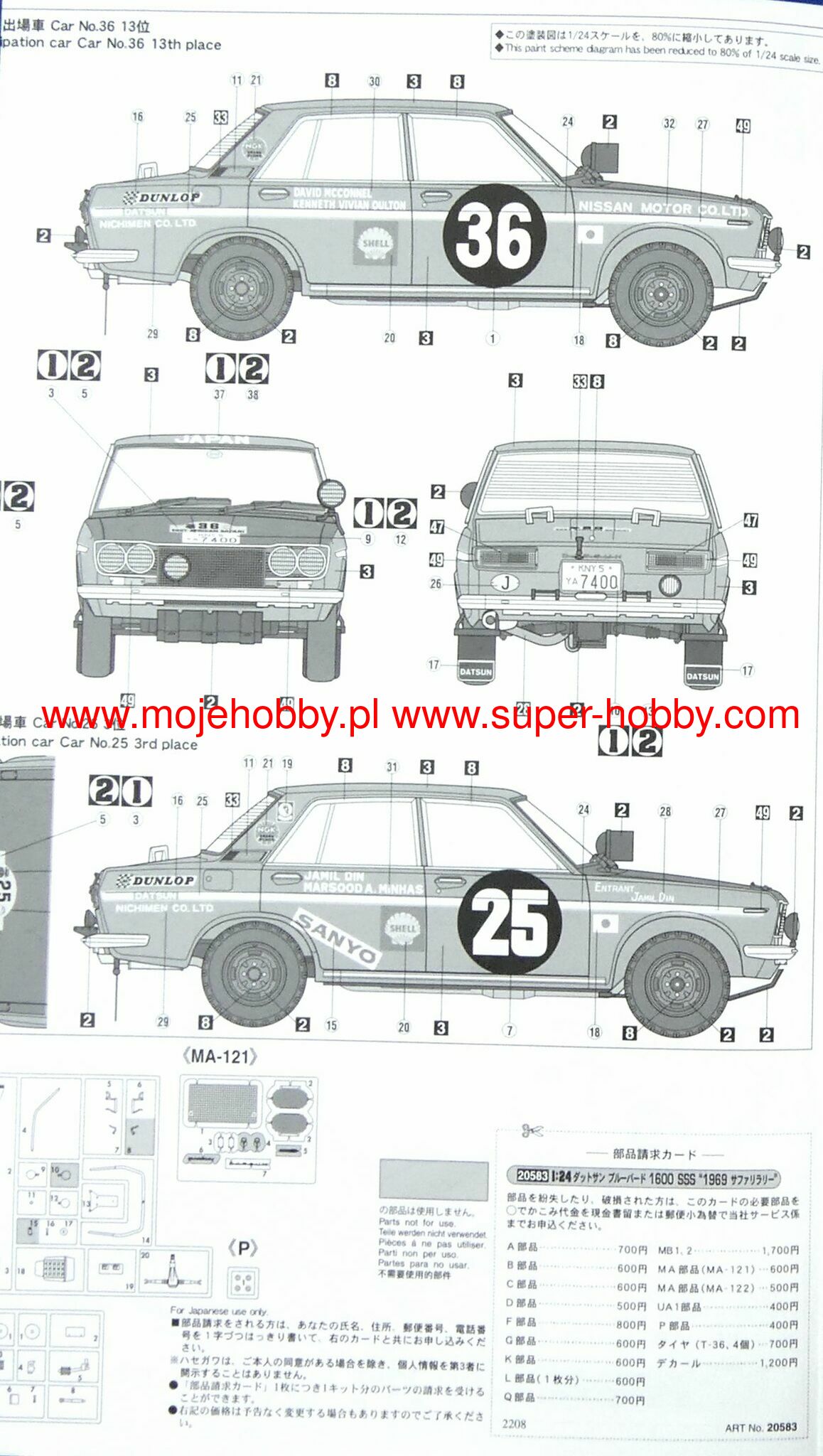 DATSUN BLUEBIRD 1600 SSS 1969 EAST AFRICAN SAFARI RALLY HASEGAWA (1/24) продается в 2 магазинах. Выберите подходящий Вам интернет-магазин и перейдите по ссылке «В магазин».