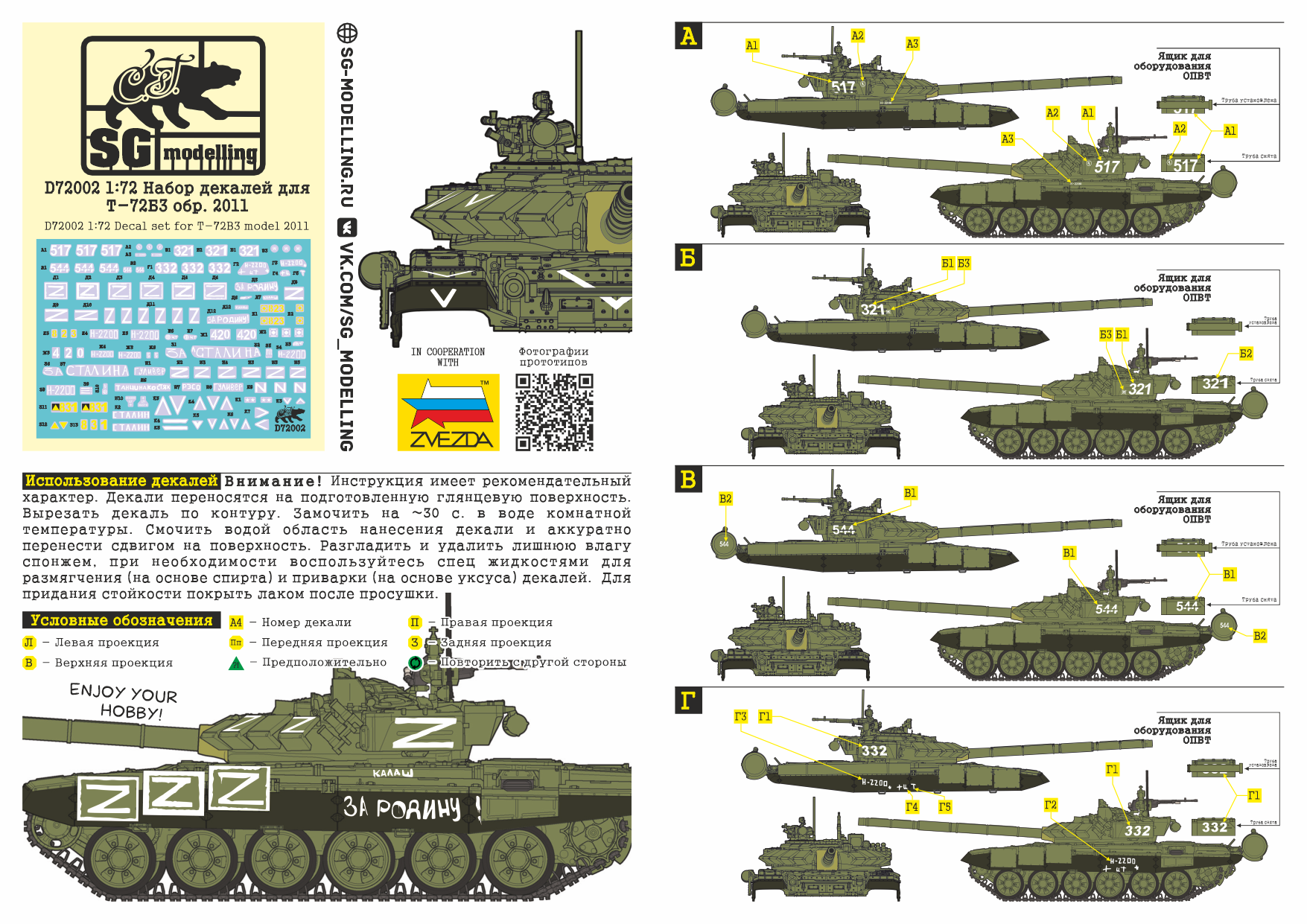 Купить D72002 ДЕКАЛИ НАБОР ДЕКАЛЕЙ ДЛЯ ТАНК-72Б3 ОБР. 2011 (1/72)