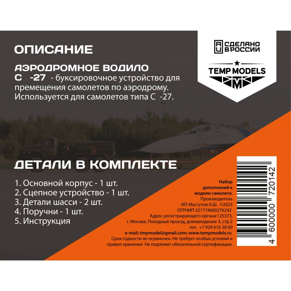 Купить 72014 ДОПОЛНЕНИЯ ИЗ СМОЛЫ АЭРОДРОМНОЕ ВОДИЛО ОКБ С-27 (1/72)