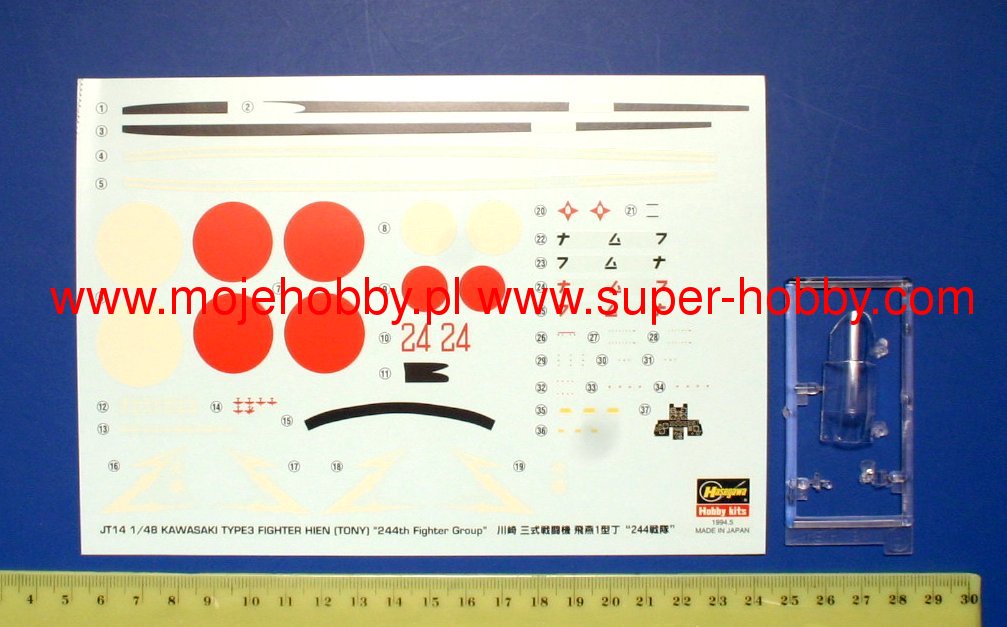 Kawasaki Ki-61 Hien (Japanese flying swallow) is a Japanese, single-engine, metal low wing fighter with a classic tail from the Second World War. The prototype's flight was nice in December 1941, and the first planes reached the line units in February 1943. The heart of the aircraft was the Kawasaki Ha-40 or Ha-140 engine, that is, a liquid-cooled German Daimler-Benz DB 601A built under license. The Ki-61 surprised the Allied forces during the fighting in New Guinea in June 1943, where it was taken as a copy of the German Messerschmitt Me-109, later suspected to be a copy of the Italian Macchi C202 or other Italian fighter. For this reason, he was given the nickname "Antonio" or "Tony". During the fights in 1943, Ki-61 fighters demonstrated their considerable advantage over American machines, such as the F-4 Wildcat. The Ki-61 later fought over the skies of New Britain and New Ireland, and in 1944 they were used in combat in the Philippines. Later they were used to defend the Japanese islands. Some of them have become kamikaze planes. The Ki-61 was undoubtedly a very good fighter, but its Achilles' heel was limited in series production due to problems with the engines. Technical data (version Ki-61-I): length: 8.94m, wingspan: 12m, height: 3.7m, maximum speed: 580km / h, rate of climb: 15.2m / s, maximum range: 580km, ceiling maximum 11,600m, armament: fixed - 2 12.7mm Ho-103 machine guns and 2 20mm Ho-5 cannons, suspended - up to 500 kg of bombs.