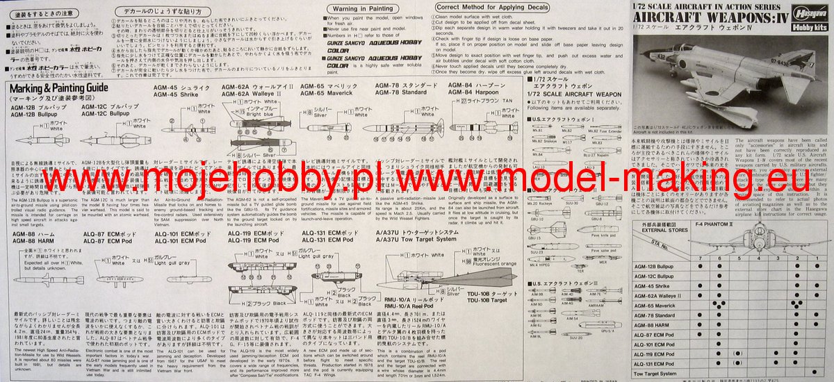 The AGM-12 Bullpup was an American air-to-ground and air-to-water missile from the Cold War period. Its first prototypes appeared in the mid 1950s, and mass production began in 1959 and continued until 1970. The AGM-12 was a missile with a range of 5,000 to 12,000 meters, capable of carrying a warhead weighing from 113 to 453 kg, and its total mass - depending on the version - ranging from 259 to 810 kg. The AGM-12 Bullpup was created in response to the US Navy's post-Korean demand (1950-1953) for a missile capable of destroying surface targets from a distance safe for the carrier aircraft. The AGM-12 was originally based on a 113 kg bomb body, but a rocket engine and a guidance system were added to it. The latter was the line of sight guidance system and required constant eye contact of the operator with the target (the so-called MCLOS guidance). Several versions of the AGM-12 missile were developed in the course of serial production. The first to be produced on a large scale was the AGM-12A. The next version is AGM-12B, which had a liquid fuel drive, which allowed to increase the range and the transferred head. A version of the AGM-12D was also developed, which was planned to be equipped with a nuclear warhead W-45 with a capacity of up to 15 kT. Based on this version, the AGM-12C model was created, which had a conventional warhead. The last version of the AGM-12 missile was the E model with an anti-tank warhead. AGM-12 Bullpups were used by many American aircraft, including: A-4 Skyhawk, A-6 Intruder, A-7 Corsair II, F-8 Crusader and F-4 Phantom II. Missiles of this type were also used in Australia, Greece, Denmark, Norway, Turkey and Great Britain. They were used on a relatively large scale during the Vietnam War in 1964 / 1965-1975.The AGM-45 Shrike was an American class air-to-ground missile from the Cold War period. Its first prototypes appeared in the mid-1950s, and the missile was used by the US armed forces in 1963-1992. The AGM-45 was a solid-fuel missile with a range of up to 40 kilometers, capable of carrying a warhead weighing 68 kg, and its total mass was 177 kg. The AGM-45 Shrike was the first American missile designed from the ground up to destroy enemy radar stations. The company Texas Instruments (now part of the Raytheon concern) was responsible for its development. In fact, the AGM-45 is a far-reaching modernization of the AIM-7 Sparrow missile, which primarily concerned the missile guidance system and the installation of a new warhead. Two basic versions of this missile were created: AGM-45A and AGM-45B, which differed mainly in the rocket engine used. Its effective use required the pilot to find himself in the enemy's radar beam and launch the AGM-45 missile at the right angle. Missiles of this type were used, among others, by the F-4 Phantom or the F-105 F / G Thunderchief. They were used on a large scale in the Vietnam War (1964 / 1965-1975), where, however, they proved to be effective at the level of only 25%, which led to their supplementation first with AGM-78 missiles, and later with much more perfect AGM-88 HARM missiles. Israel was the only official foreign user of the AGM-45 missiles.The AGM-65 Maverick is a modern American air-to-ground or air-to-water missile. Its first prototypes appeared in the mid-1960s, and the missile was produced in 1972-1999. The AGM-65 is a solid-fuel missile with a range of up to 27 kilometers, capable of carrying a warhead weighing from 56 to 135 kg, and its total mass - depending on the version - from 208 to 302 kg. The AGM-65 Maverick was developed to replace the AGM-12 Bullpup missiles. Hughes and Raytheon were responsible for its development. The new missile had a better range than its predecessor, was less reliable, and in later versions it also used a more effective guidance system. Several versions of this missile were created in the course of serial production. The first, produced on a large scale, was the AGM-65A model, which was still guided via a television link, and its actual effective range was very limited. In 1975, the AGM-65B version with a modified guidance system entered service. In the next version - AGM-65D - infrared guidance has already been used. In turn, in the AGM-65E missile, the weight of the warhead increased significantly (from 56 to 135 kilograms). Missiles of this type were or are used by many American aircraft, including: A-4 Skyhawk, A-6 Intruder, A-7 Corsair II, F-4 Phantom, F-15 E Strike Eagle or F / A-18 Hornet. In addition to the US armed forces, AGM-65 missiles have been or are used by Great Britain, South Korea, Germany and Sweden.