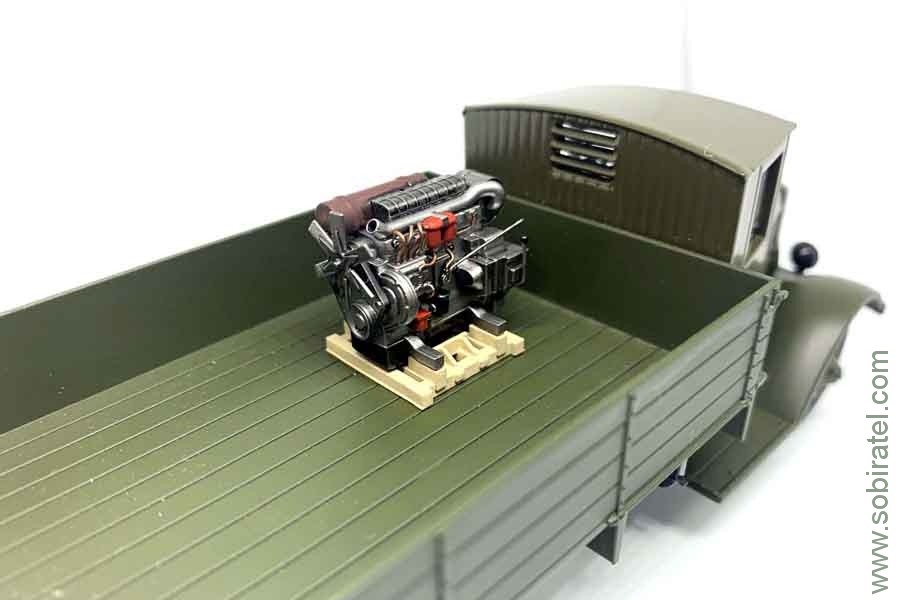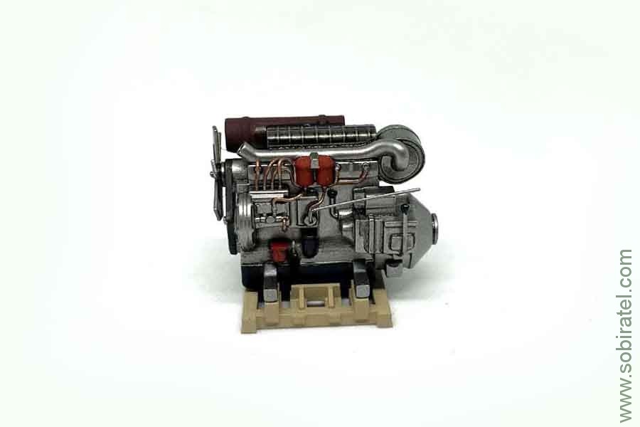 В процессе работы над моделью трактора Т-74 у мастерской Моделстрой остался запас смоляных движков. В итоге модель трактора получила металлический двигатель. Смоляные двигатели имеют более высокую детализацию. Вентилятор - фототравление. Добавлен поддон. В процессе создания у Моделстрой получилось два вида двигателя. Один покрашен в условно серый цвет (как бы двигатель с завода). Другой покрашен в условно хром. Серый двигатель прекрасно подходит для создания диорам или установки в кузов как груз. Версия "хром" прекрасно выглядит как самостоятельный экспонат, яркое пятно на вашей полке. Описание и изображение производителя