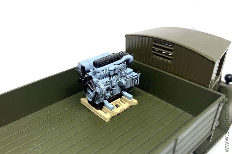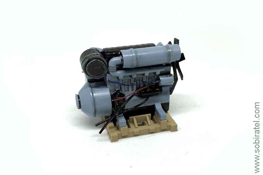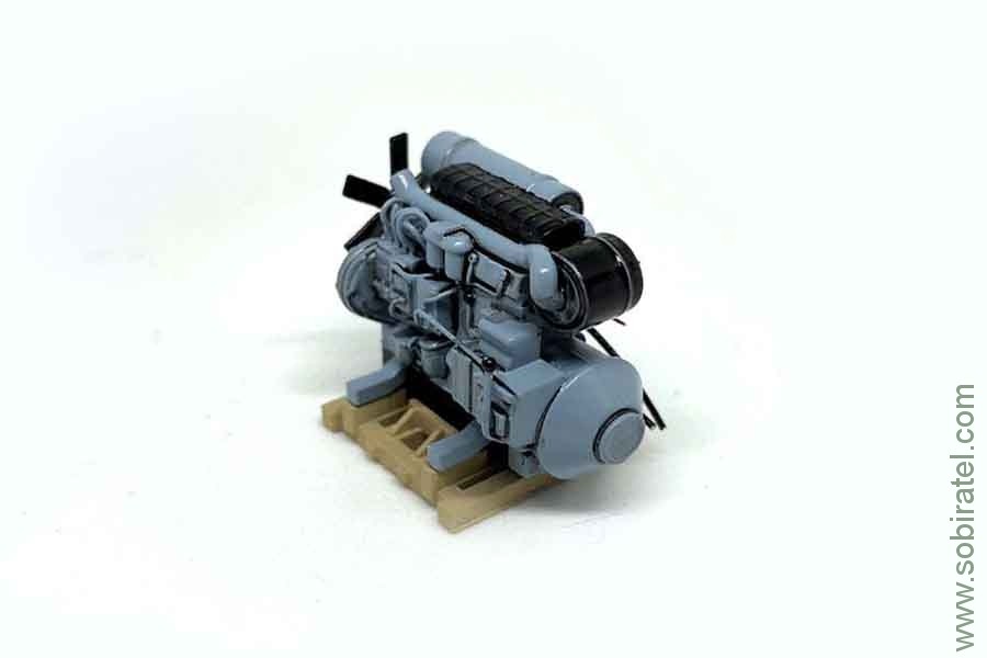 В процессе работы над моделью трактора Т-74 у мастерской Моделстрой остался запас смоляных движков. В итоге модель трактора получила металлический двигатель. Смоляные двигатели имеют более высокую детализацию. Вентилятор - фототравление. Добавлен поддон. В процессе создания у Моделстрой получилось два вида двигателя. Один покрашен в условно серый цвет (как бы двигатель с завода). Другой покрашен в условно хром. Серый двигатель прекрасно подходит для создания диорам или установки в кузов как груз. Версия "хром" прекрасно выглядит как самостоятельный экспонат, яркое пятно на вашей полке. Описание и изображение производителя