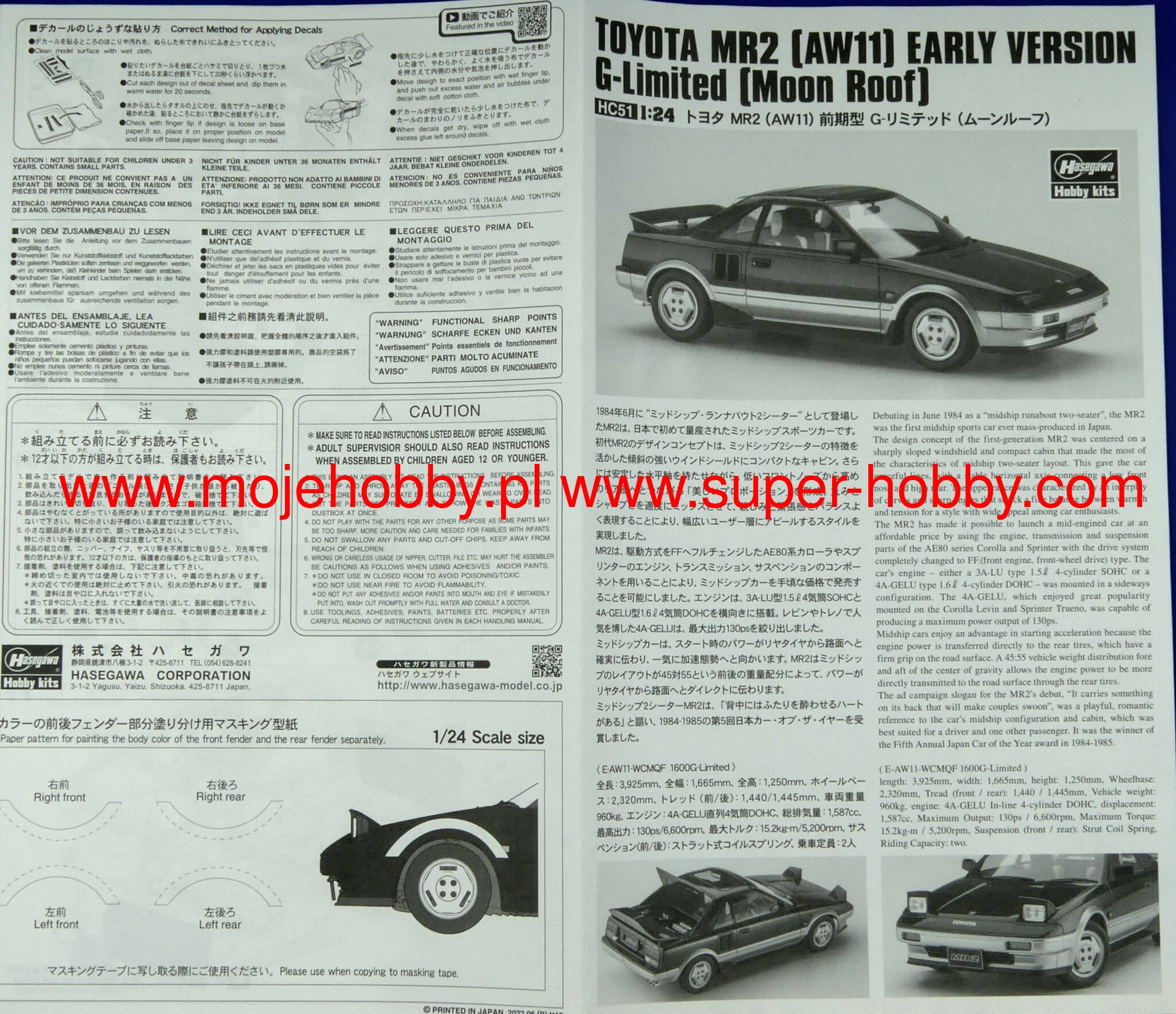 21151 TOYOTA MR2 (AW11) EARLY VERSION G-LIMITED (MOON ROOF) (1984) hasegawa 1/24