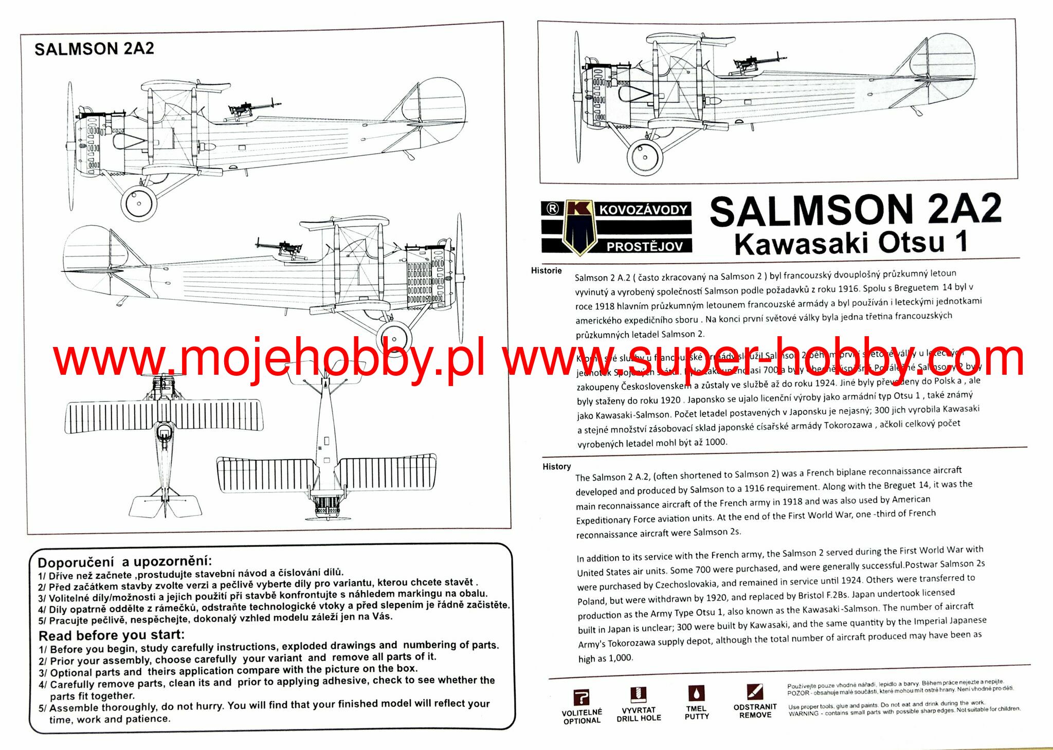 The Kawasaki Otsu-1 (another designation: Kawasaki-Salmson) was a Japanese reconnaissance biplane with a fixed landing gear in a classic layout from the interwar period. The drive was provided by a single engine with a power of up to 230 HP. The deck armament consisted of 2-3 7.7 mm machine guns. Kawasaki Otsu-1 was a Japanese, licensed version of the French Salmson 2 reconnaissance aircraft (exactly its A2 version), which was one of the most important machines of this type in French aviation during the First World War. Japan purchased a license to manufacture these successful machines shortly after the end of the Great War, and production was carried out at Kawasaki's facilities and at the military facilities in the city of Tokorazawa. The exact number of these machines produced is only an estimate, but it is assumed that at least 600 aircraft of this type were manufactured. It is worth adding that the Kawasaki Otsu-1 was the basic reconnaissance aircraft of the Japanese army in the early 1920s.