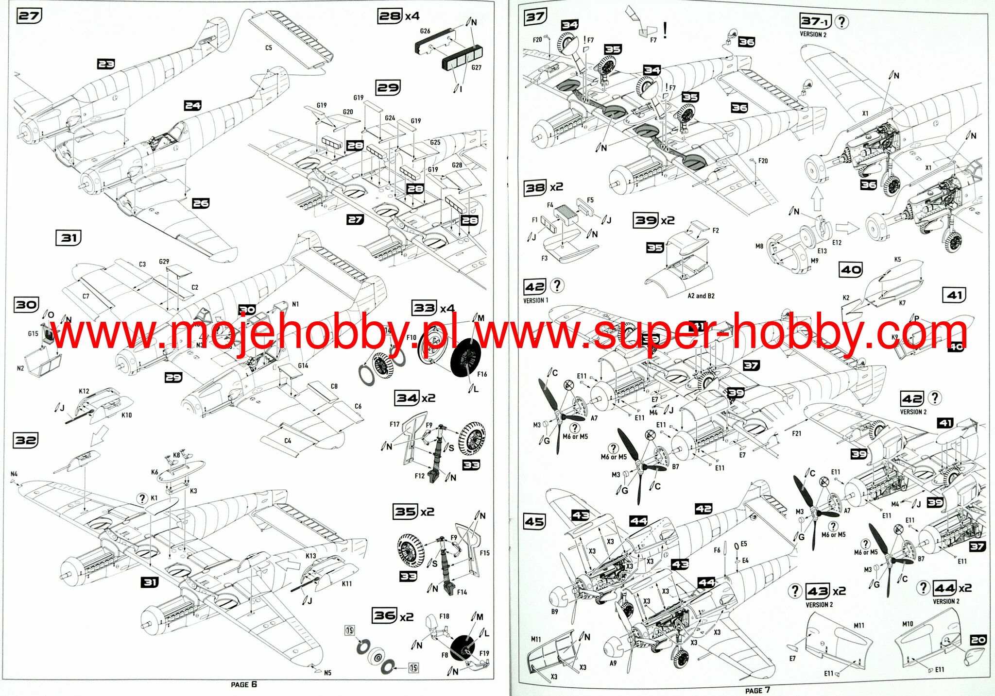 The Messerschmitt Bf-109 is a German metal-structure single-engine fighter in a low wing configuration with a classic tail. It turned out to be the basic and most produced Luftwaffe fighter during World War II. The flight of the prototype took place on May 29, 1935, and serial production continued in the years 1936-1945. In total, it is estimated that a total of about 35,000 Messerschmitt Bf-109 fighters of all varieties were produced, many of which ended up in the Czech and Israeli air forces after the war. The roots of the Bf-109 go back to the competition announced in 1933 by the Luftwaffe for a new fighter plane. In competition with the He-112, the Bf-109 project initially lost, but thanks to Willie Messerschmitt's intrigues, the project could continue and eventually he was the winner of the competition, becoming the Luftwaffe's primary fighter. Several main variants of the Bf-109 were developed in the course of production. The first pre-production series was the Bf-109B (Berta) with different versions of the Junkers Jumo 210 (A or Da) engine. They were tested in Spain from 1937 during the Civil War. The next version is the Bf-109C (Caesar). They had a different engine than the B version, and extensive armament consisting of two 20mm and 2 HP 7.92mm cannons. These machines also fought in the skies of Spain. The third version is the Bf-109D (Dora) with the Junkers Jumo 210 Da or Daimler-Benz DB 600 engine. It fought in the September campaign, but at the turn of 1939/1940 it was replaced by the E version. The most famous model was the Bf-109E (Emil) with a Daimler-Benz 601A or N engine. It was the first to use a three-blade, not a two-blade propeller. Bf-109E fought in the French campaign, over England, and in North Africa and on the Eastern Front. The ace who started his career on the Bf-109E was the famous Adolf Galland. The next version is the Bf-109F (Friedrich), which, according to the German pilots, was the most aerodynamically perfect. It sowed the changed shape of the fuselage, wings, cabin fairings, but no new engine was used. It was put into service at the turn of 1940/1941. As part of the development of the design, further Bf-109 specifications were developed, of which the G (Gustav) version was produced in the largest number of copies. The most important change increasing the machine's performance was the installation of a new 12-cylinder Daimler-Benz DB605A engine with 1475HP. The armament of the Bf-109G was a pair of 13mm machine guns located in the fuselage in front of the cockpit fairing, and the MG151 20mm or heavier MK108 30mm cannon. The last mass-produced version was the Bf-109K (Kurfirst), which production started in October 1944. A Daimler-Benz DB 605DB or DC unit was used as the engine. The Bf-109K was the fastest version produced during World War II, reaching up to 730 km / h. Apart from that, two versions were created - H and Z, but they were rather experimental versions and their mass production did not start. Subsequent improvements in propulsion and armament made the Messerschmitt Bf-109 one of the most dangerous fighters of World War II, and at the same time showed the great potential of the slightly angular airframe created by Willi Messerschmitt. Technical data (version Bf-109 G-6): length: 8.95 m, wingspan: 9.92 m, height: 2.6 m, maximum speed: 640 km / h, rate of climb: 17 m / s, maximum range: 850 km, maximum ceiling 12000m, armament: fixed - 2 MG131 13mm machine guns and 1 MG151 20mm cannon, suspended - 250 kg bombs, or 2 Wfr missile launchers. Gr. 21.
